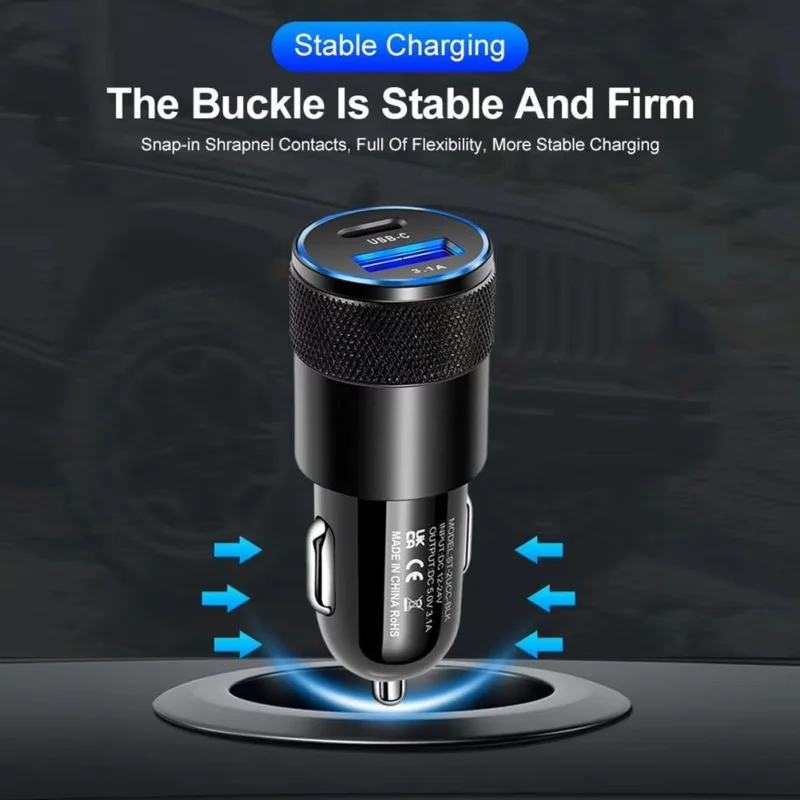 15W USB+PD Small Steel Cannon Car Charger Metal Aluminum Alloy Car Charger 3.1A Mobile Phone Car Charger