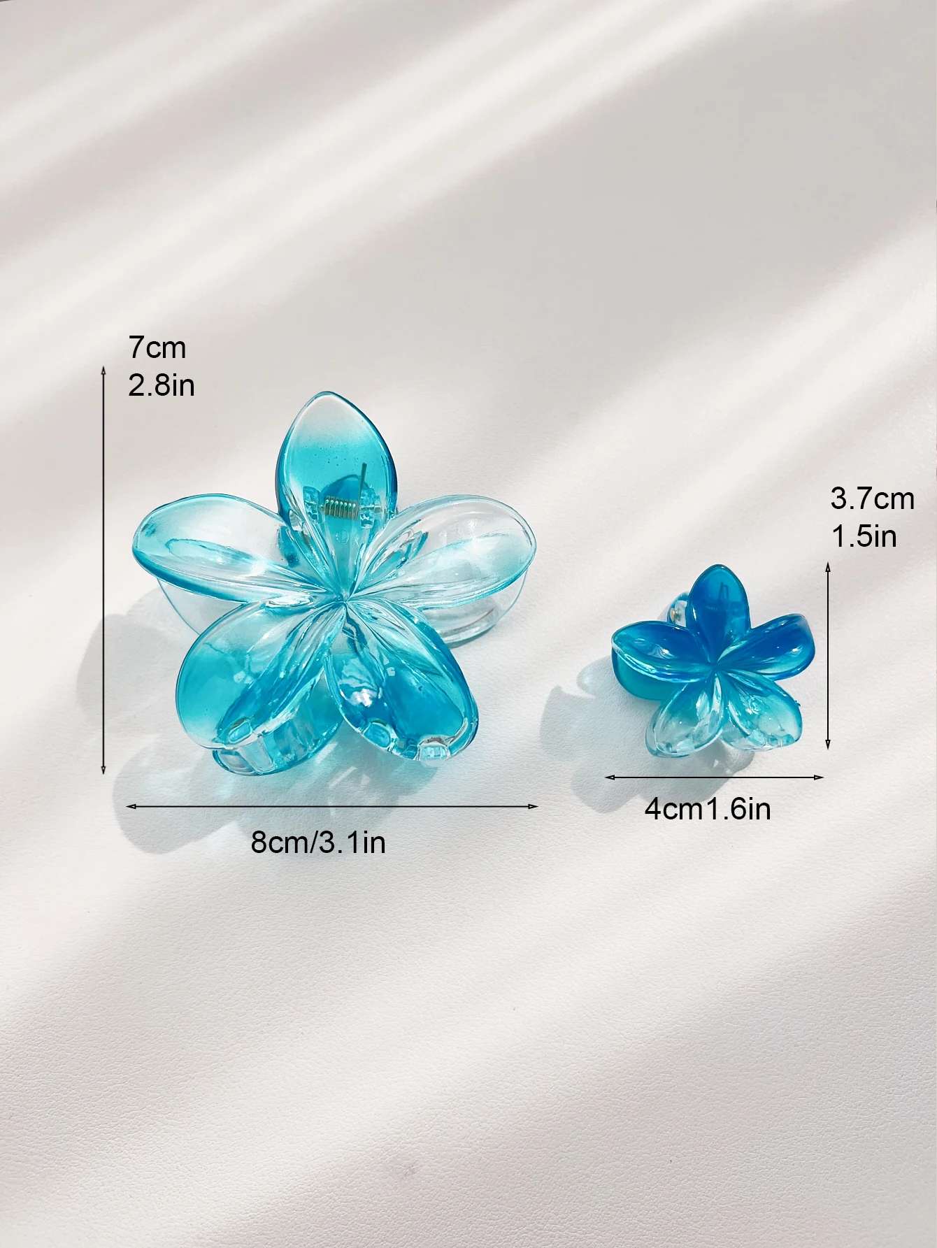 3 Pcs Fashion Women Flower Hair Claws Hawaiian Gradient Hair Clips,Vacation Beach Black Rectange Hair Accessories