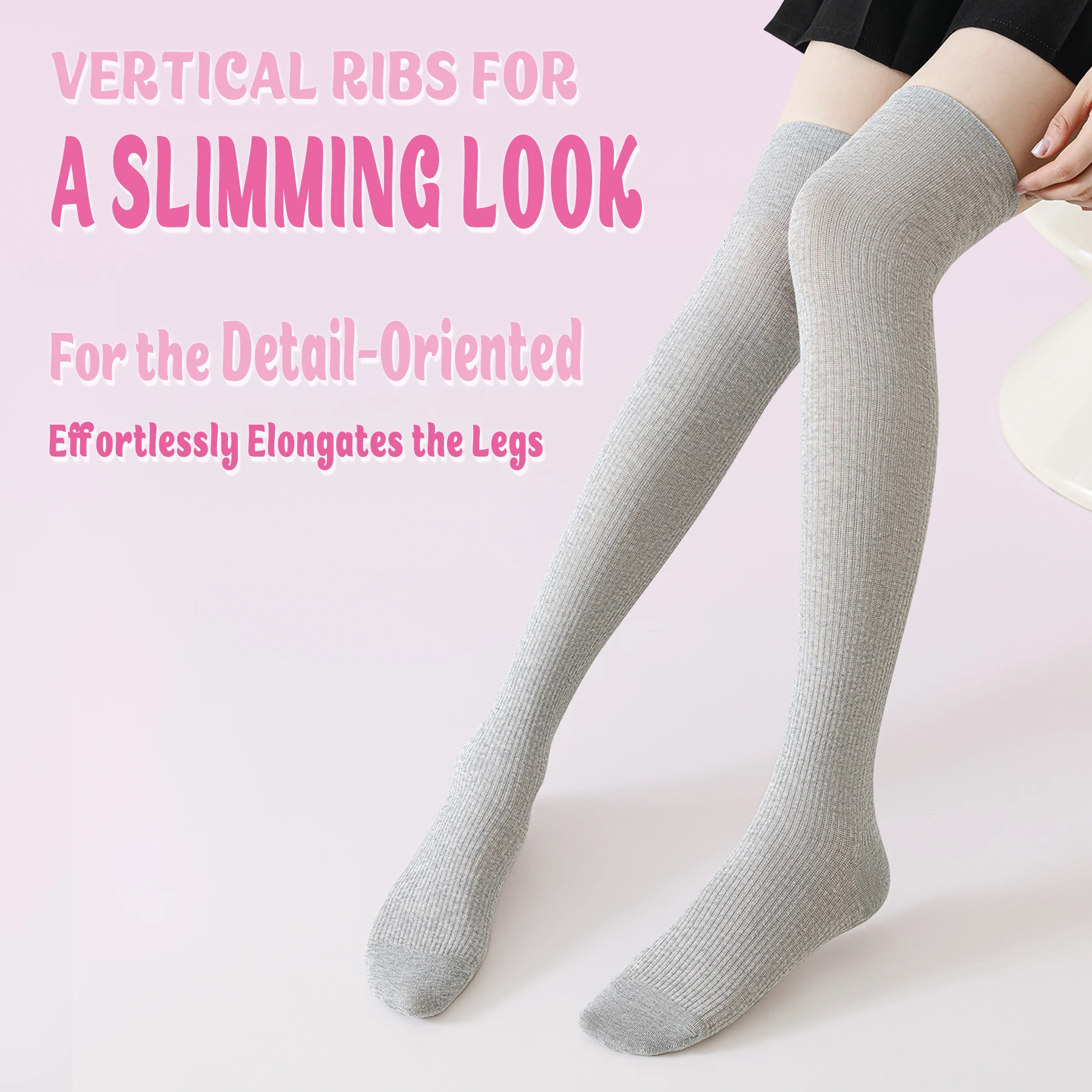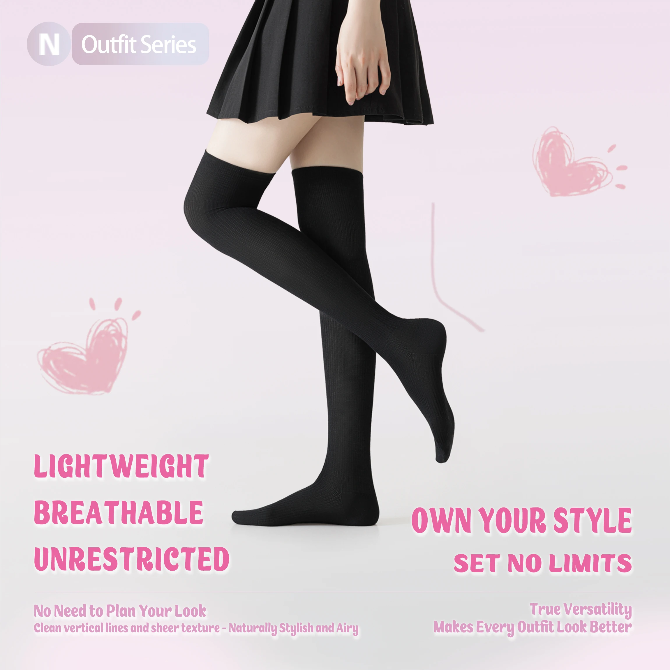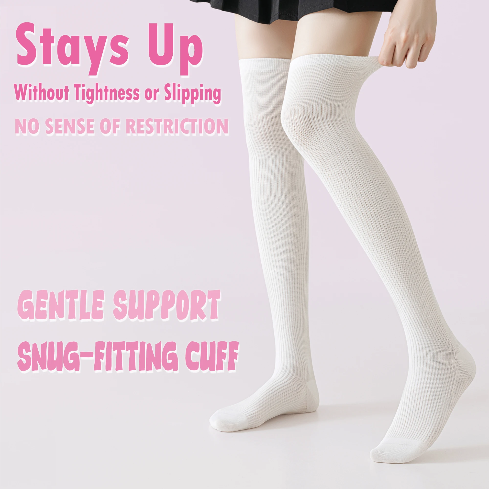 2 Pairs Women's Graduated Compression Thigh-High Socks, Comfort Ribbed Cuff and Stay-Up Fit for All-Day Support