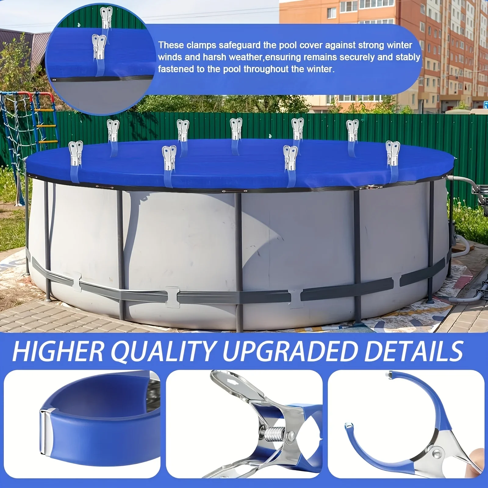10pcs Durable Stainless Steel Pool Cover Clips with Plastic Handles - Heavy Duty Windproof Spring Clips