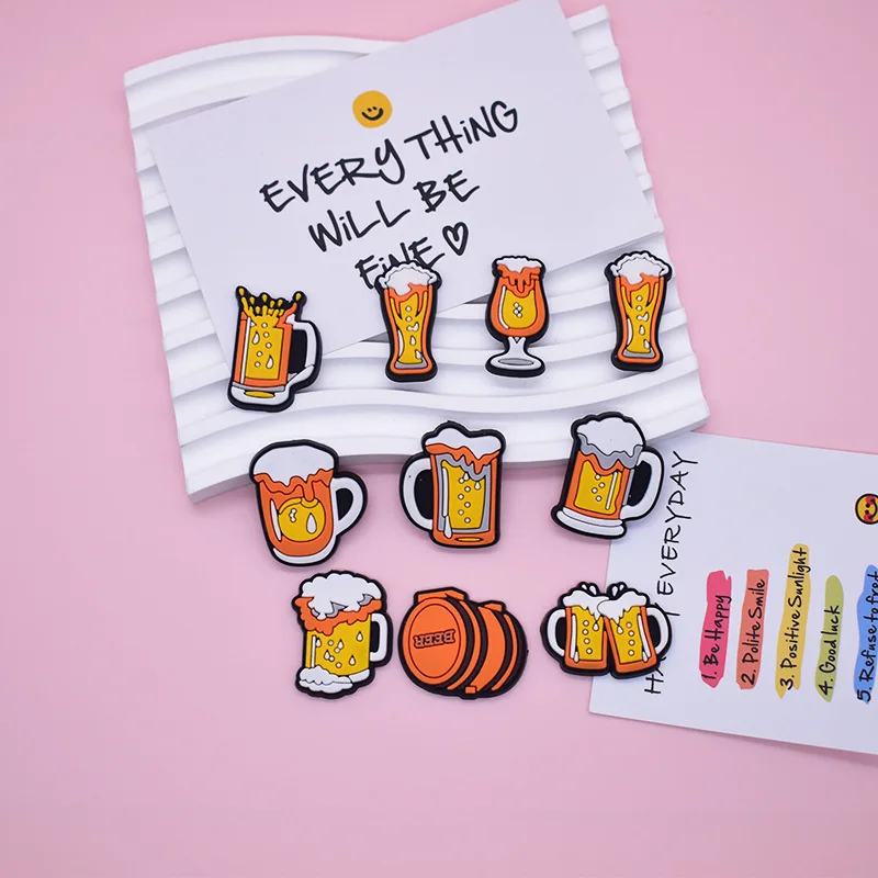 1-15pcs Cartoon Beer Fried Chicken PVC Shoe Charms Accessories Clogs Slides Sandals Shoe Decoration Buckles Fit Boys Girls Gifts