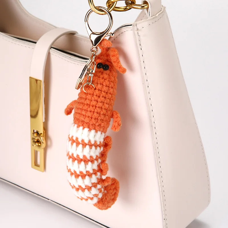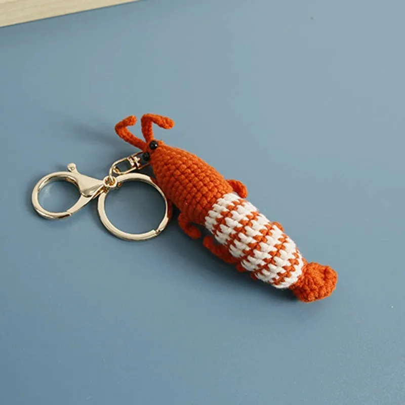 Cute Shrimp Charm Keychains Mini Hand Knitted Car Keyring Lovely Backpack Handbag Pendant Couple Keyholder