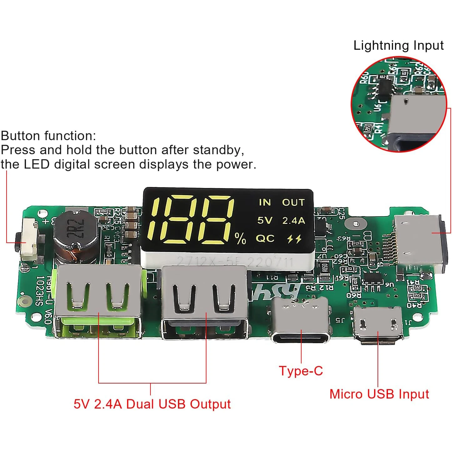 3pcs Lithium Battery Charger Board LED Dual USB 5V 2.4A Micro/Type-C USB Mobile Power Bank 18650 Charging Module Circuit