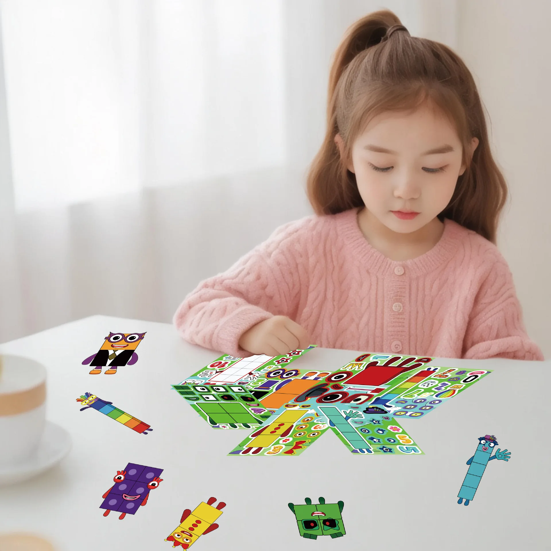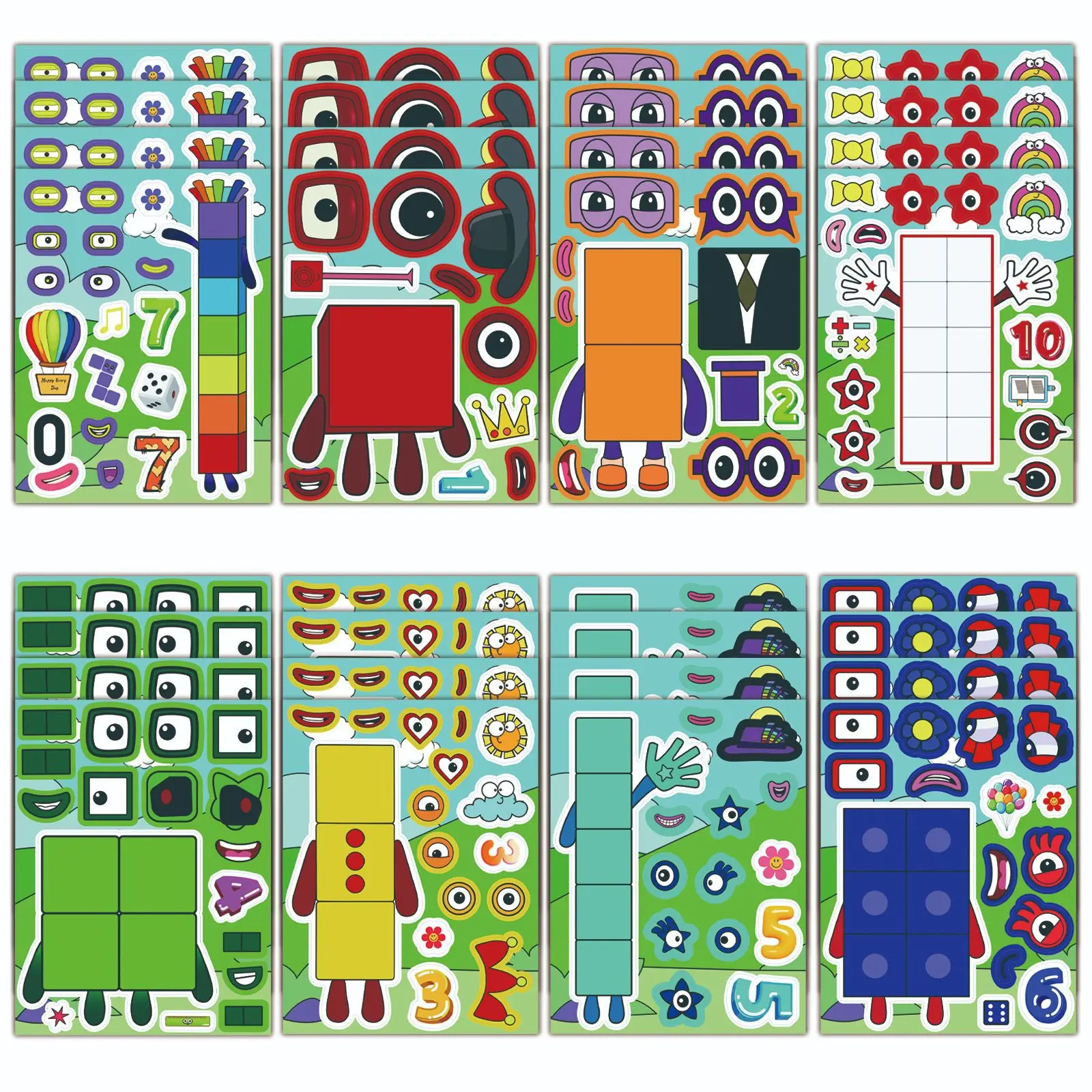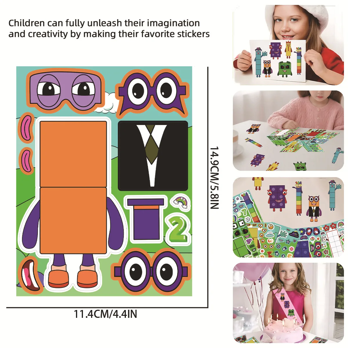 8pcs Cute Digital Building Blocks, Puzzle Stickers, Children's Cartoon Interactive Puzzle DIY Face Stickers Decoration