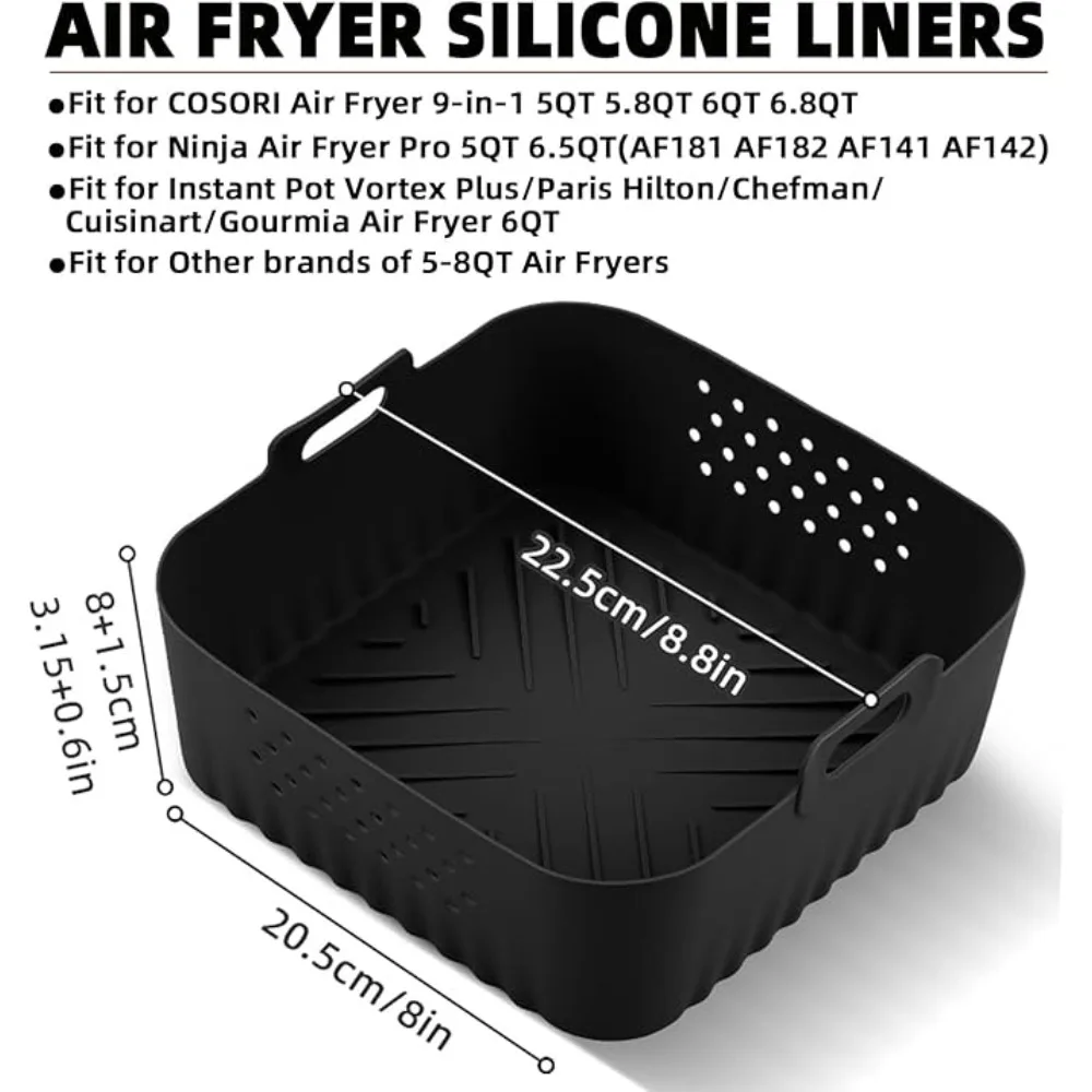 Silicone Air Fryer Liners 22.5cm Non-Stick Basket Reusable for Ninja AF181 AF180 AF141 AF140 Compatible with 5-8QT Air Fryers