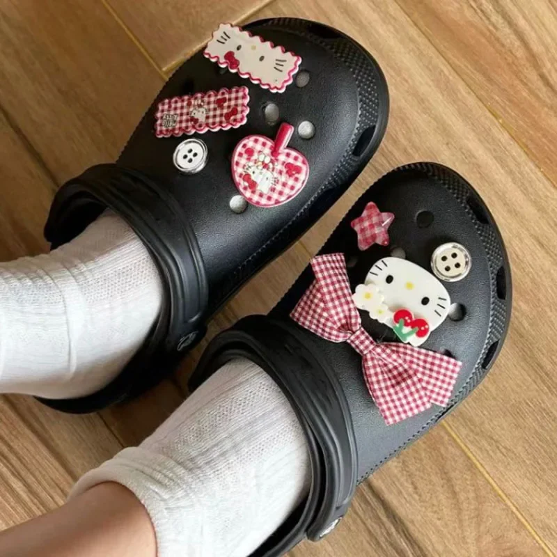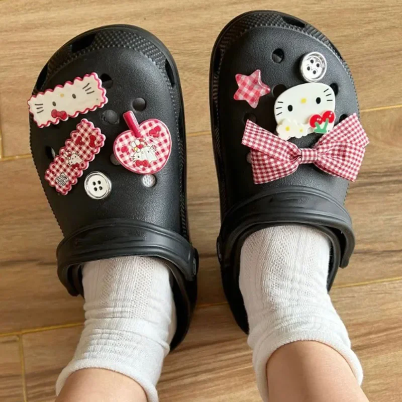 MINISO Sweet Cute Girly Charms Designer Elegant Vintage Hello Kitty bow Shoe Jewelry All-match Flower Shoe Charms for Hole Shoes