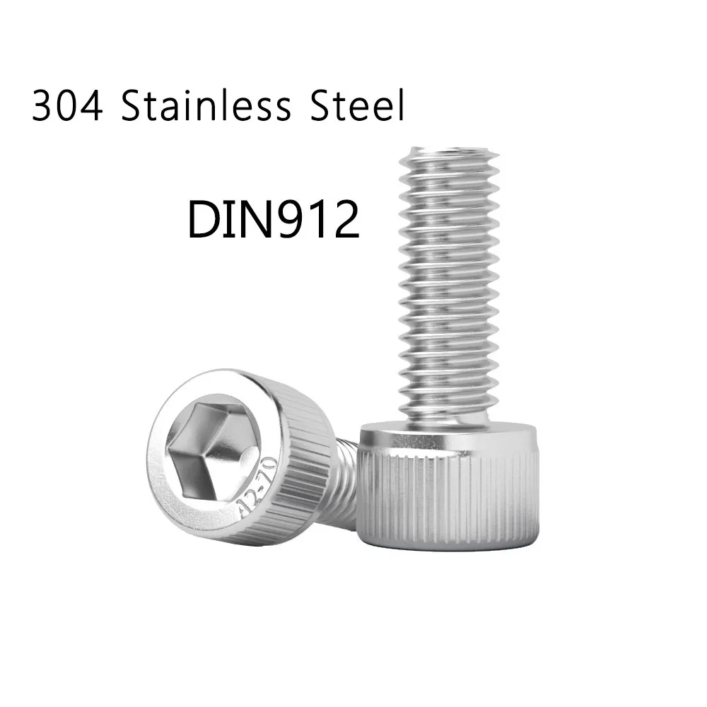 5-100pcs M2 M2.5 M3 M4 M5 M6 M8 M10 304 Stainless Steel Hex Socket Cap Head Allen Bolt DIN912 Grade 12.9 Black Hexagon A2 Screw