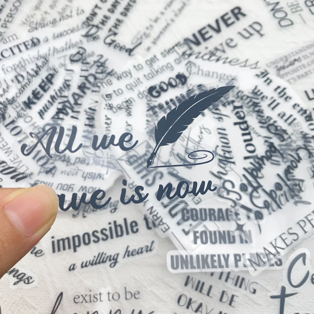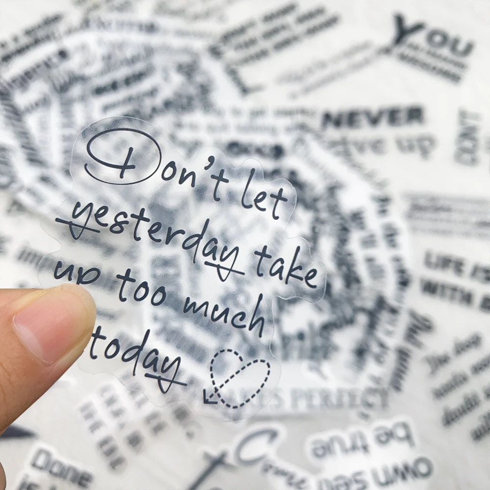 50pcs Motivational Phrases PET Stickers Decals For Laptop Notebook Suitcase Skateboard Guitar DIY Aesthetic Transparent Stickers