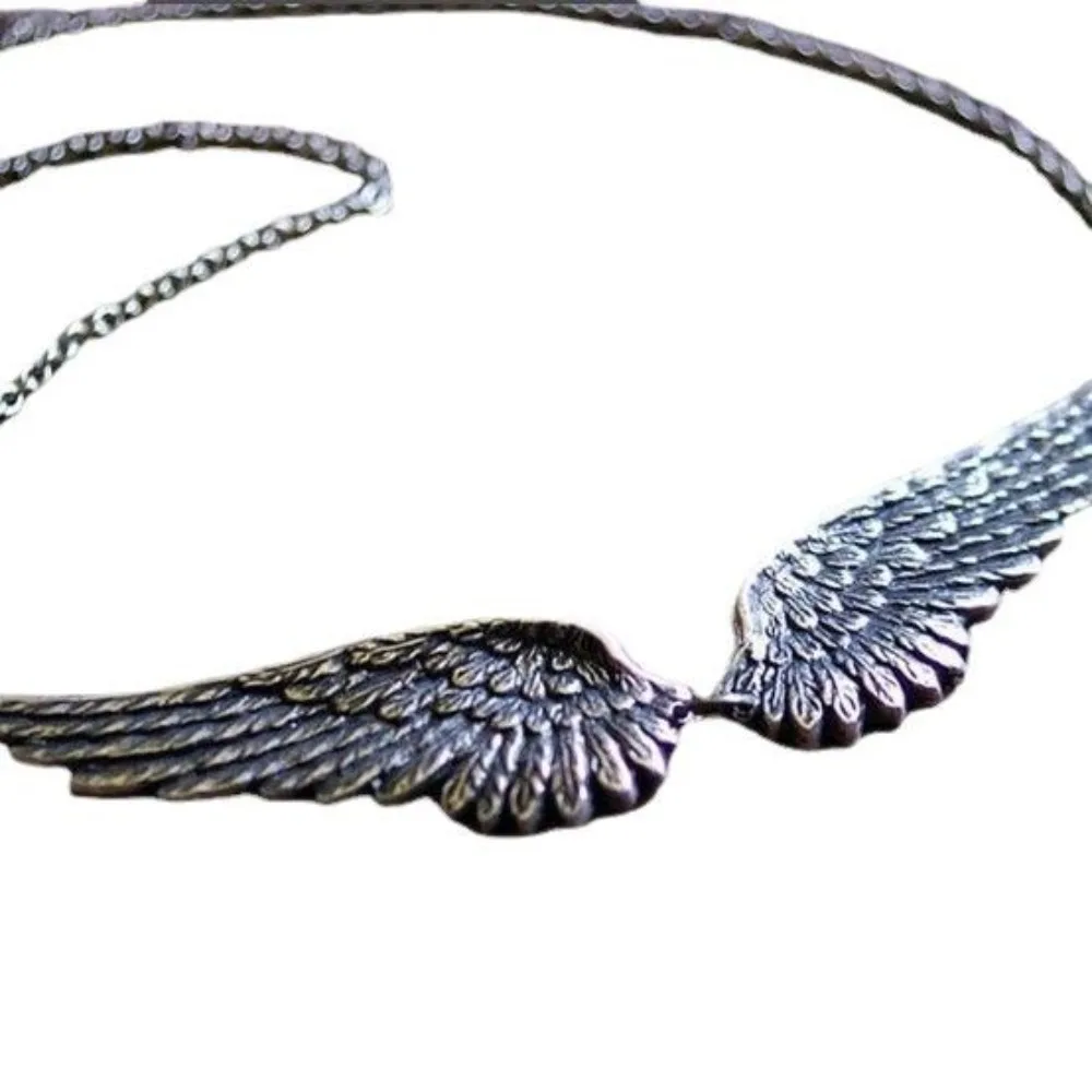 Retro Personality Sliver Color Angel's Wings Feather Necklace for Women Men Hallowmas Party Collar Chain Jewelry Accessory Gifts