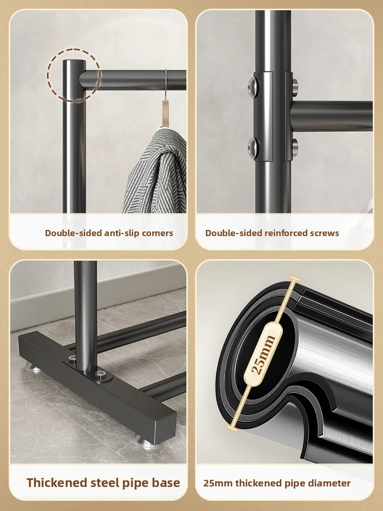 Simple Indoor Floor-Mounted Clothes Drng Ra Double Layer Space-Saving Coat Hat Holder Non-Standing Batoom Wire Ra