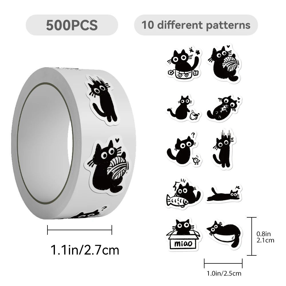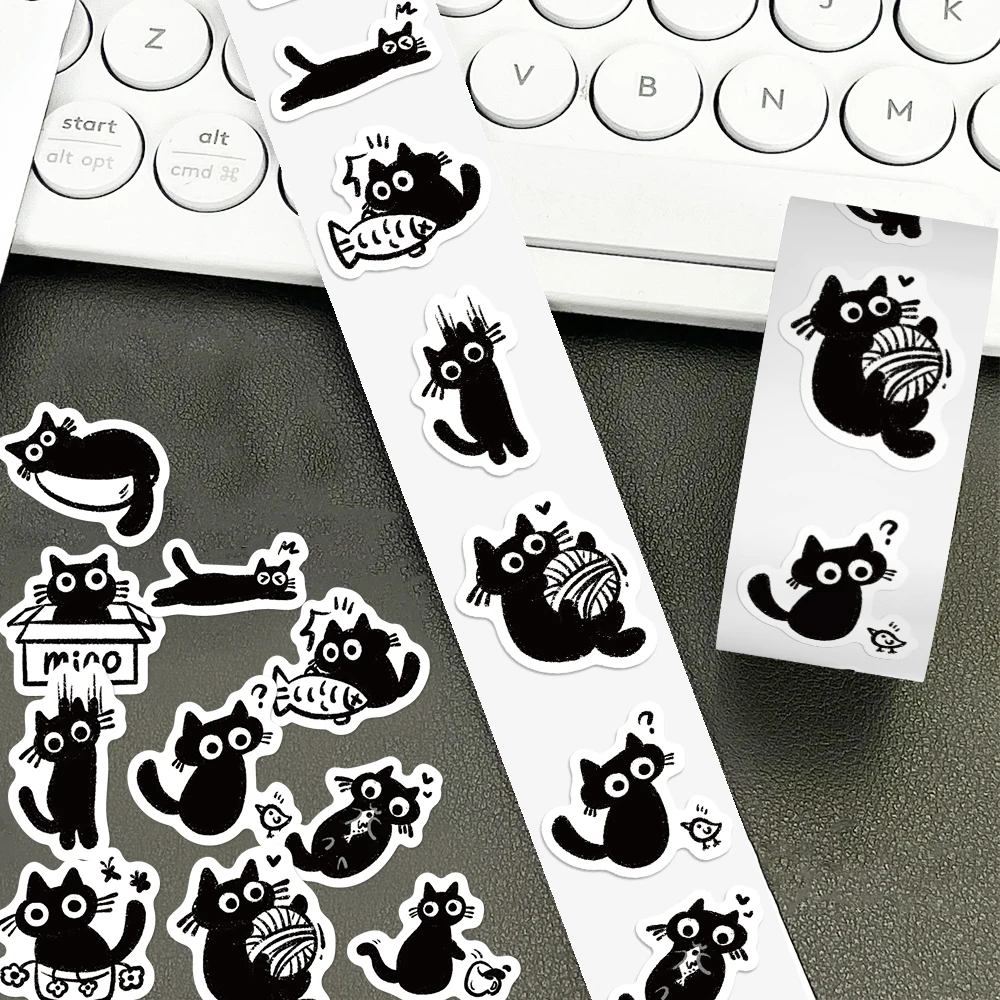 500pcs cartoon black cat roll roll stickers laptop scrapbook diary decoration guitar helmet water cup DIY stickers