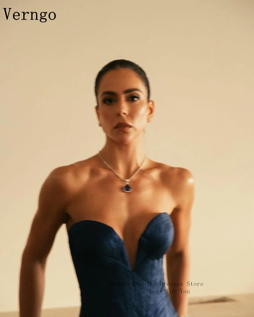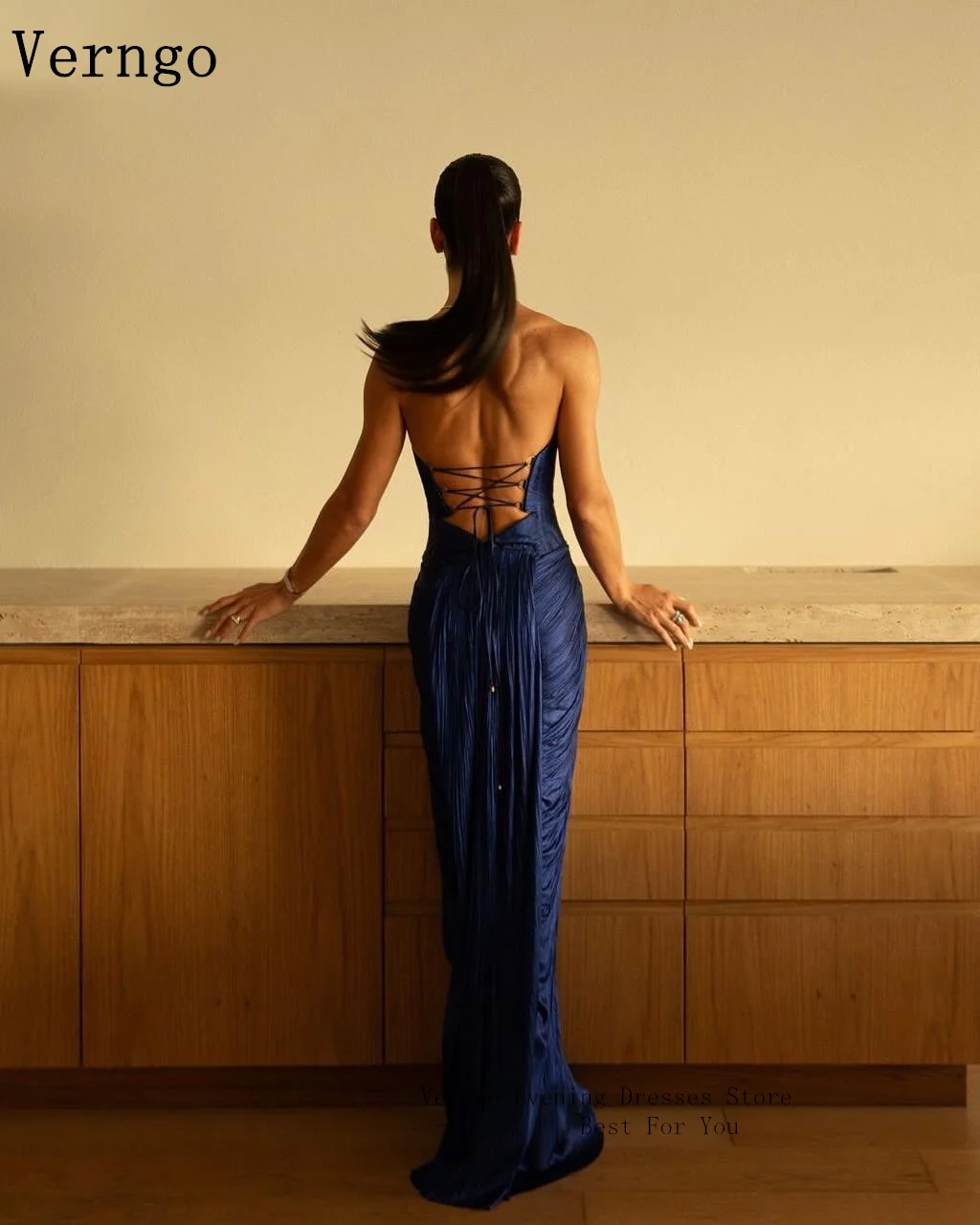 Verngo Dark Blue Shiny Evening Dress Sweetheart Mermaid Formal Occasion Dress Lace Up Modern Prom Gowns Customized