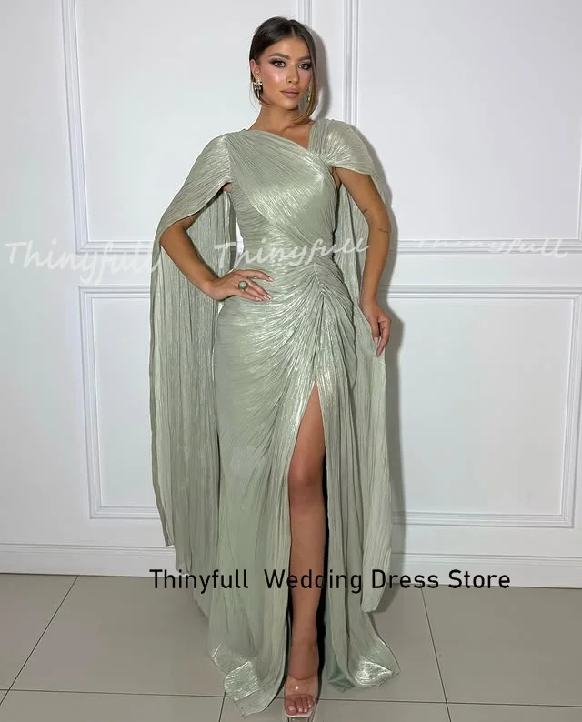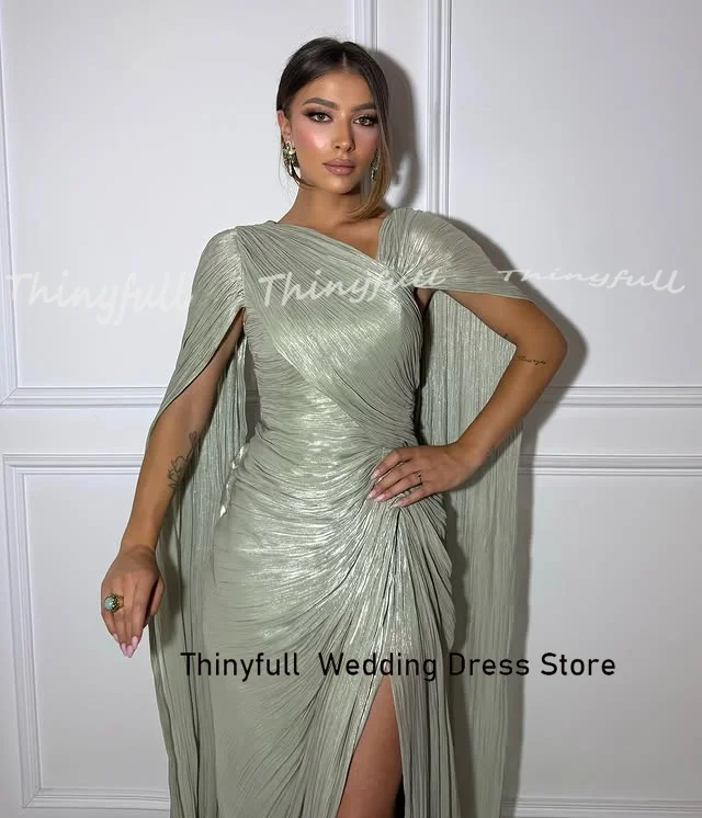 Thinyfull Mermaid Arab Prom Dresses Sleeveless Shiny Satin Evening Party Gown Dubai Split Dress robes de soirée Customized