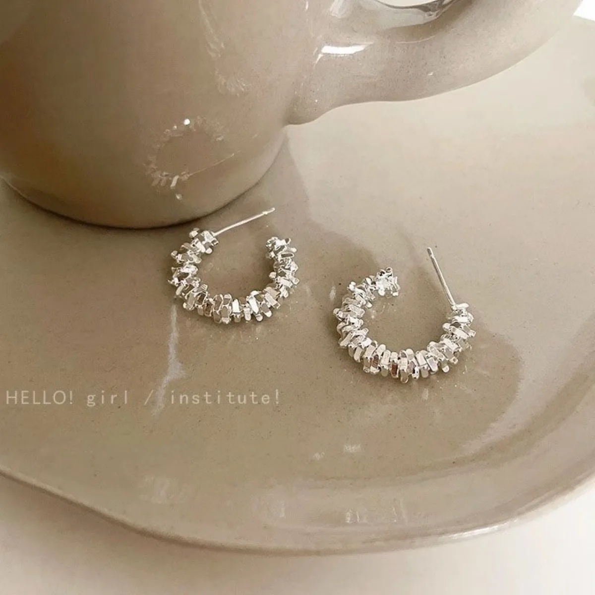 New Fashion Zinc Alloy Earrings Trend Unique Design Elegant Exquisite Irregular C Shape Earrings Female Silvery Jewelry Party