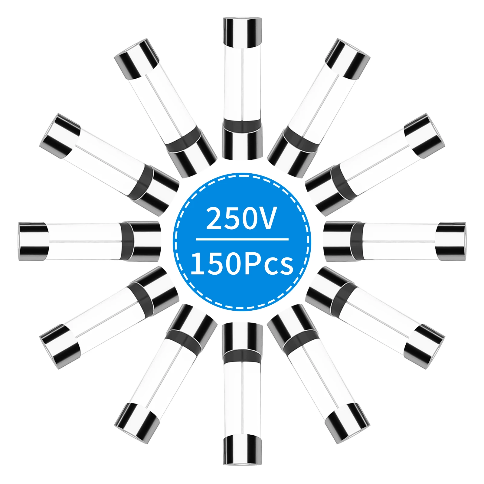 100/150pcs Fast-Blow Glass Fuses Assortment Kit 15values M5x20mm 0.1A-30A