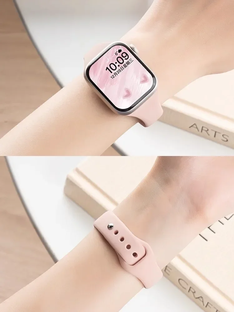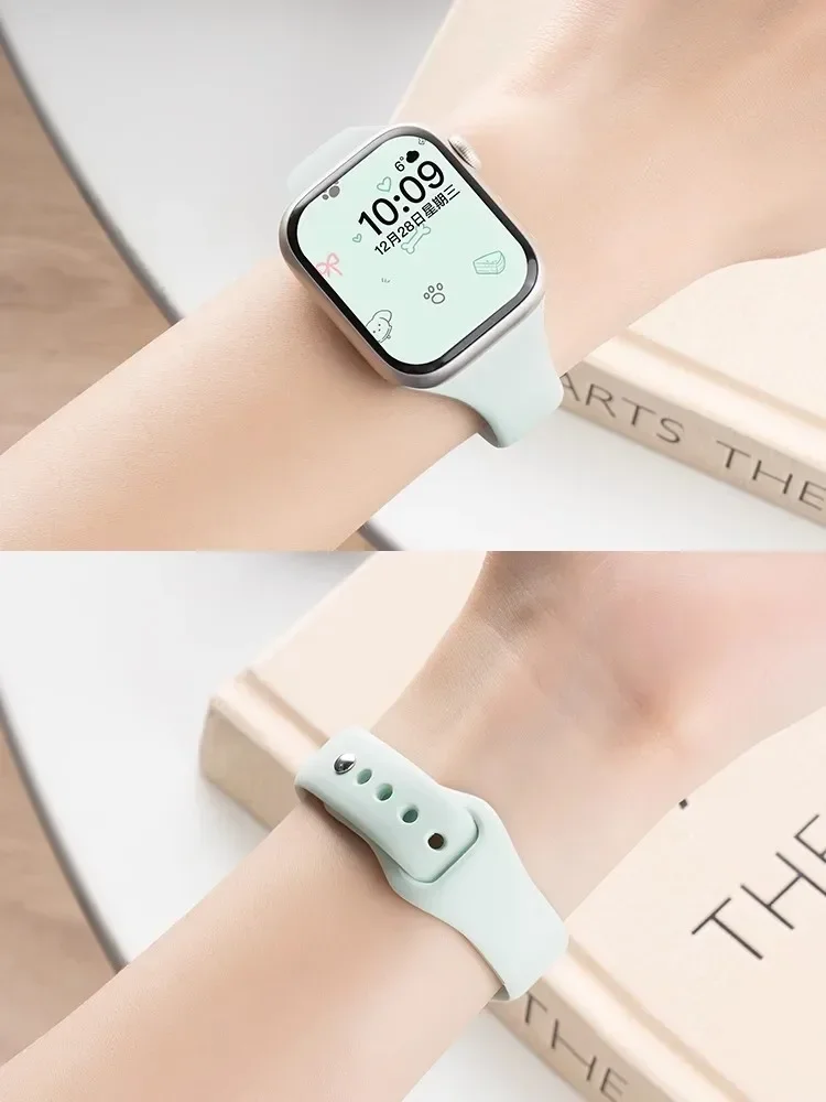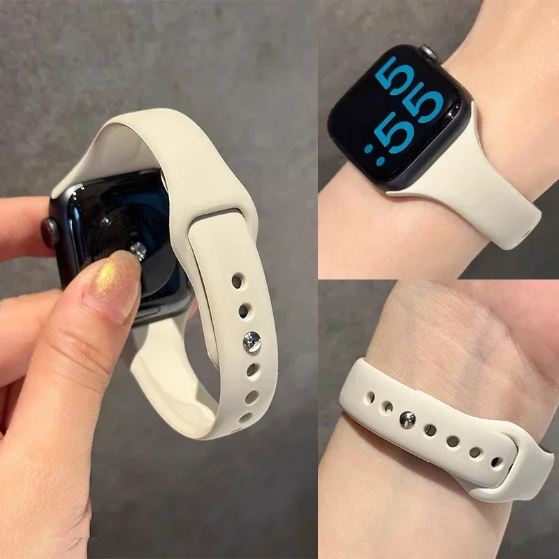 Slim Silicone Strap For Apple Watch Band 45mm 44mm 40mm 41mm 42-38mm sport bracelet iwatch series 8 7 se 3 4 5 6 9 10 46mm 49mm