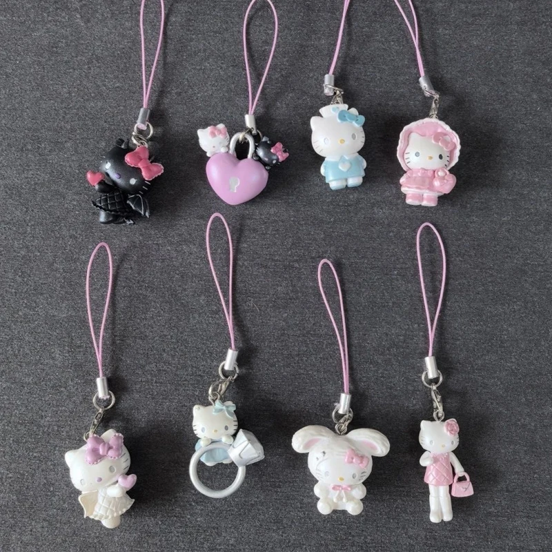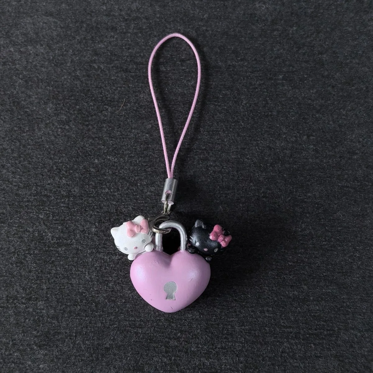 Vintage Pink Heart Lock Hello Kitty Pendant Accessories Kawaii Japanese Charm Shell Angel Wings Devil Hello Kitty Keychain Gifts