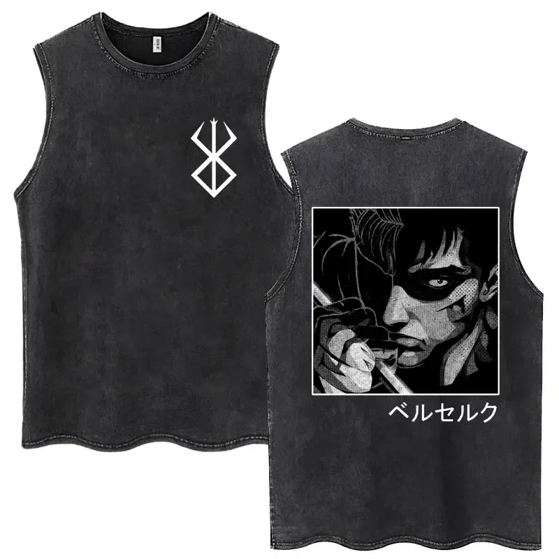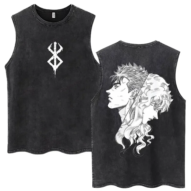 Anime Berserk Guts Washed Harajuku Tank Tops Retro Manga Gatsu Griffith Zodd Sleeveless T Shirts Uni Cotton Oversized T-Shirt