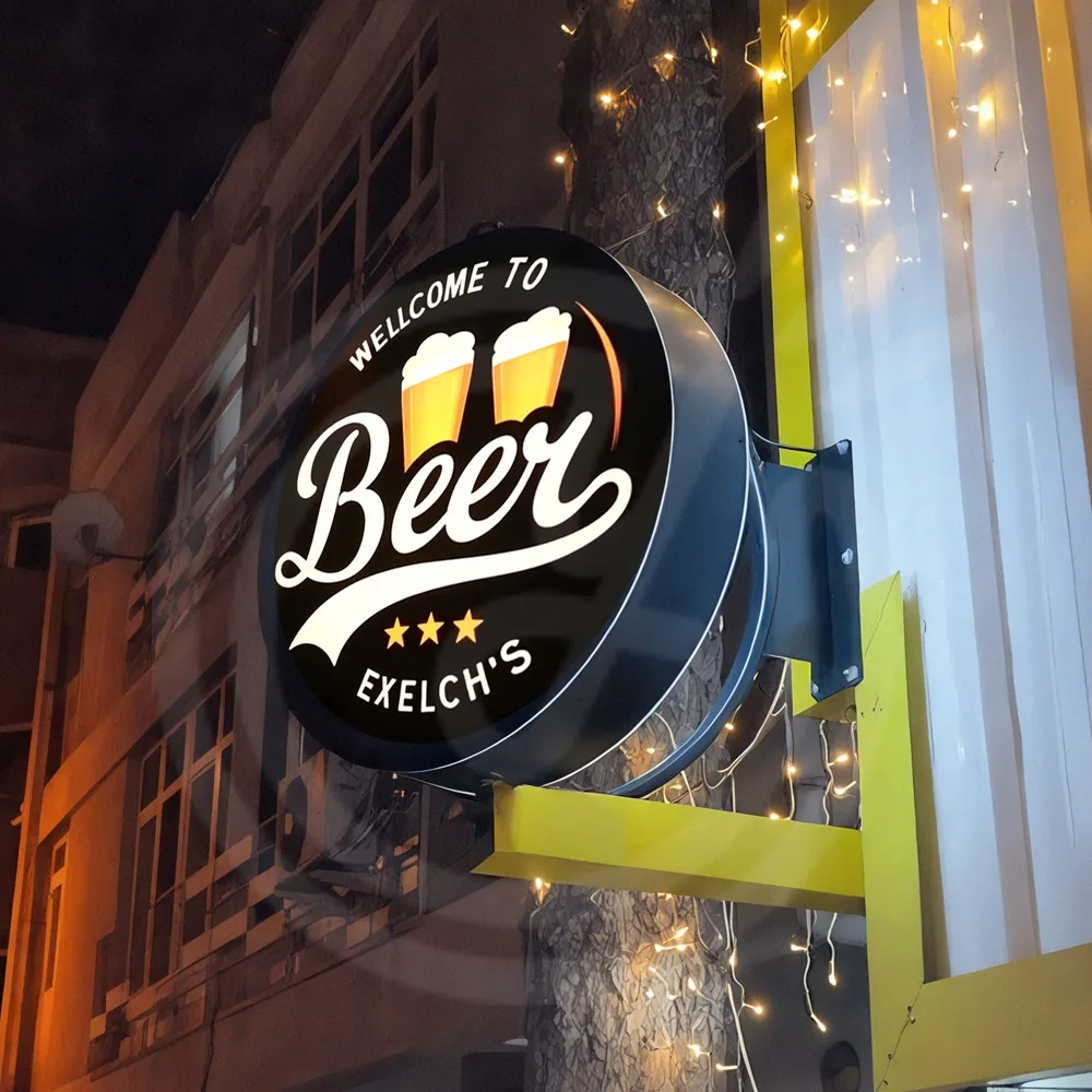 Custom 360 Rotating Light Box Acrylic LED for Storefronts Double Sided Round Box Outdoor Waterproof Hanging Sign