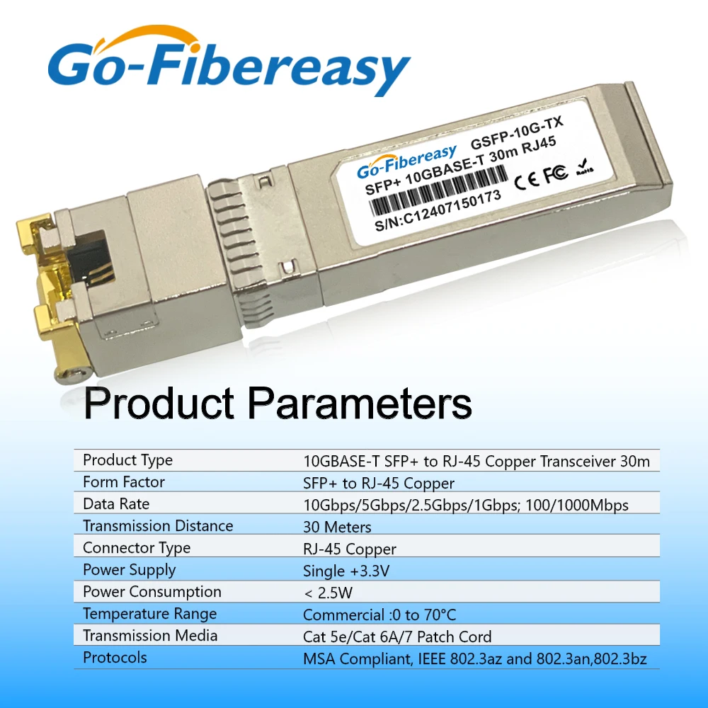 10Gb RJ45 SFP+ Module 10G/5G/2.5G 30m SFP+ to RJ-45 Port 10GBase-T Transceiver For Zyxel/HORACO/Mikrotik/HPE/Aruba Router/Switch