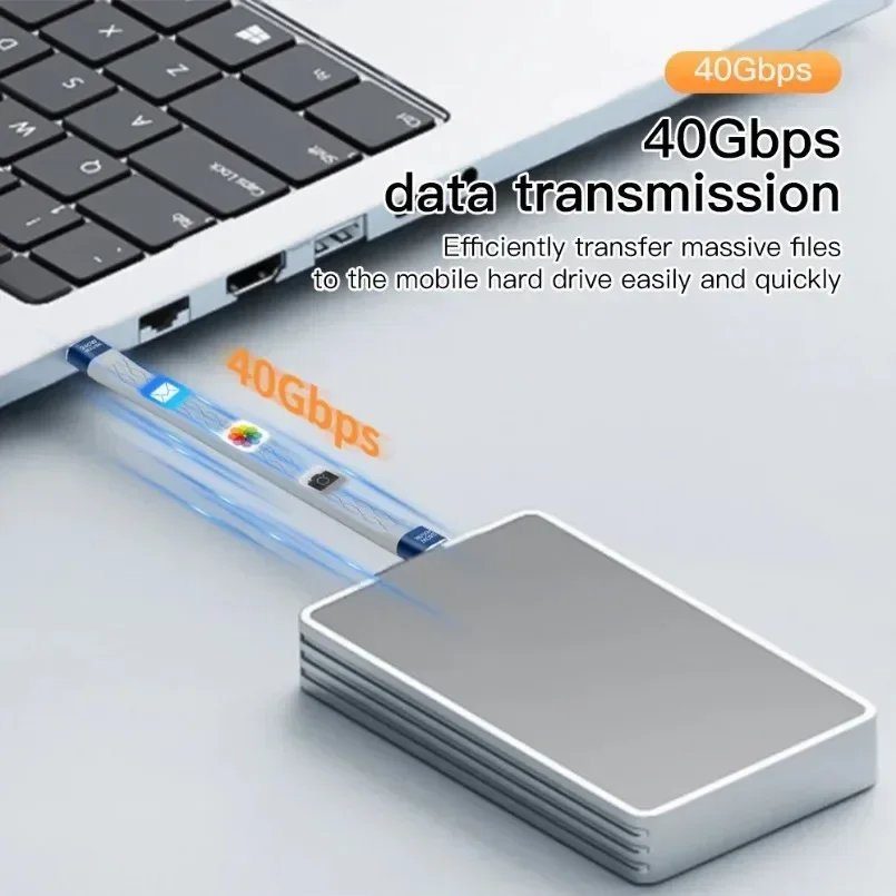 240W 40GB Short USB C to USB C Cable Fast Charging Type C Cord 40Gbps Data Transfer 8K Flat Slim FPC Data Charge Extension Cable