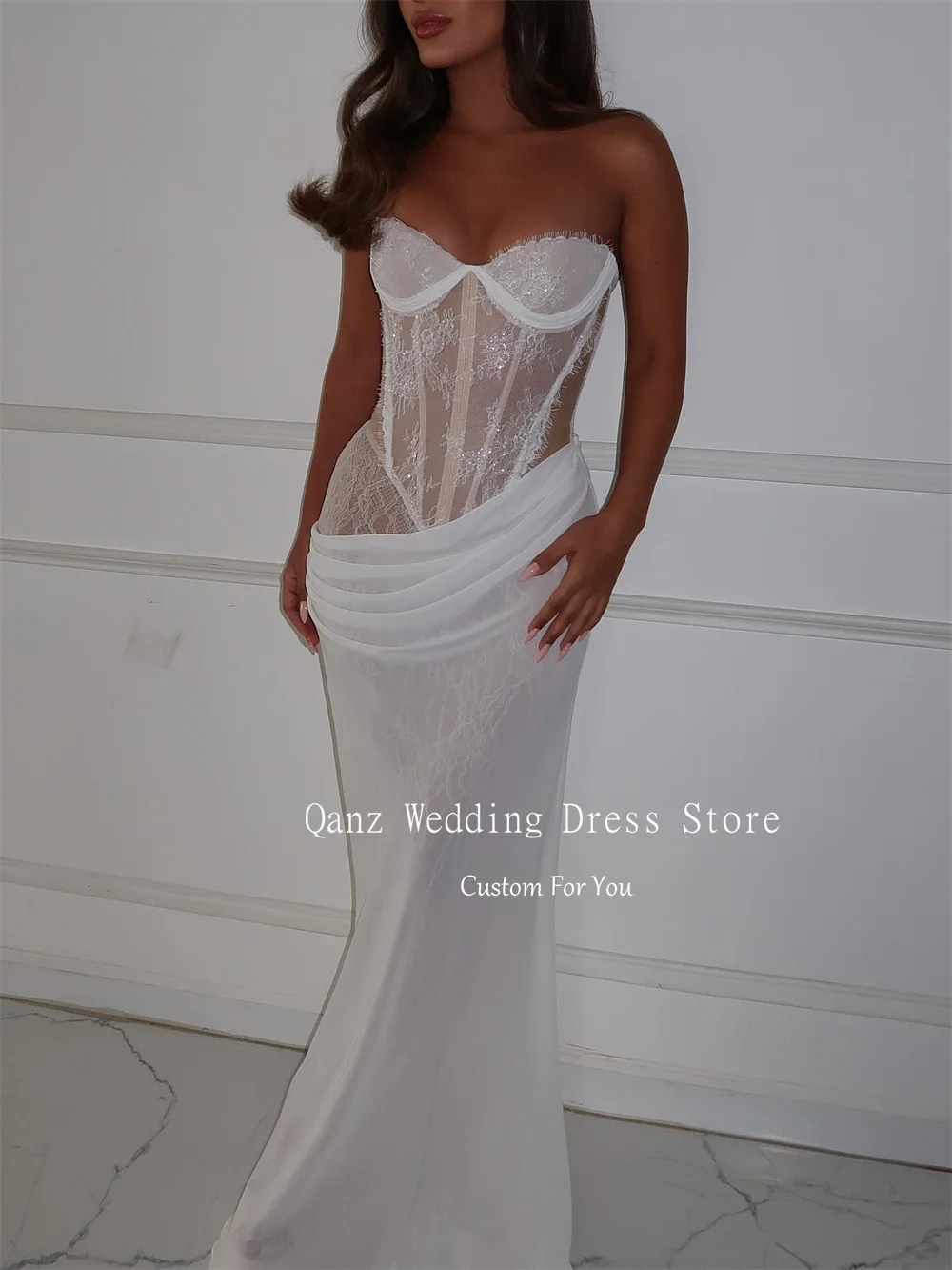 Qanz Modern Wedding Dresses Sweetheart Chiffon Mermaid Bridal Gowns Lace Appliques Corset Vestido De Novia Boda Customized