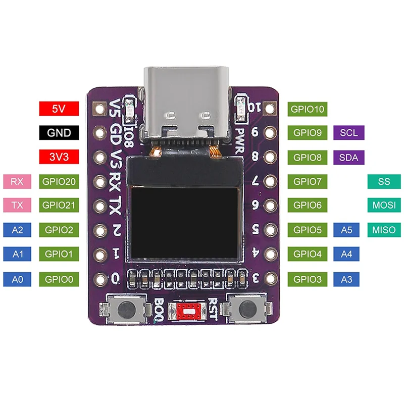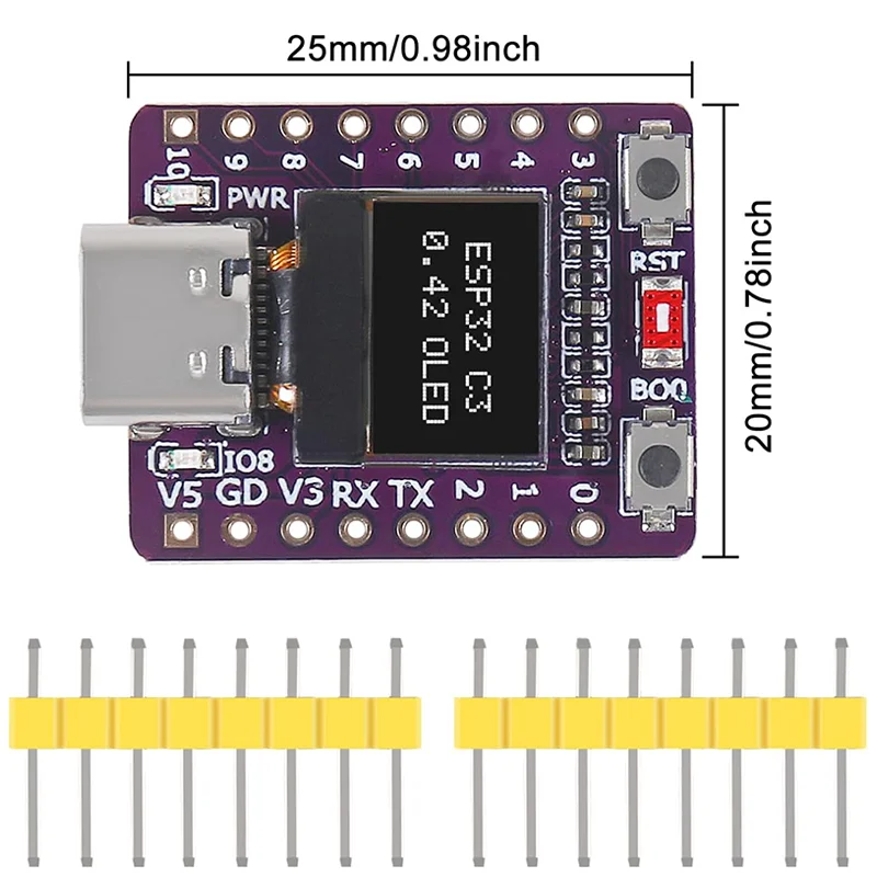 Aokin ESP32-C3 Development Board With 0.42 Inch OLED Module Ceramic Antenna Wifi Bluetooth ESP32 Supermini Development Board