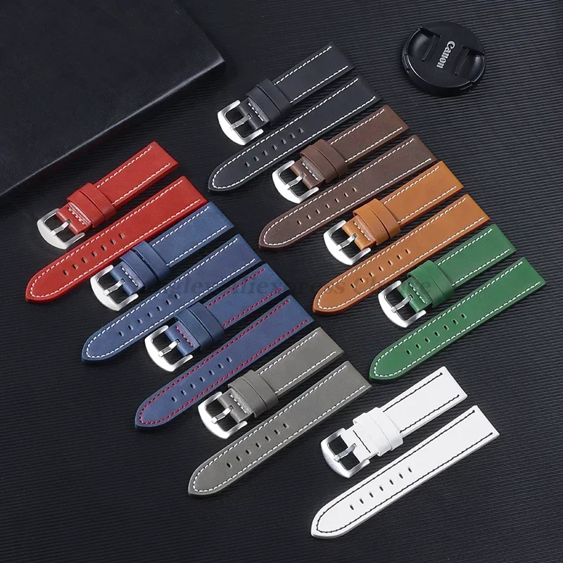 Watch Band Strap Vintage Leather Watchband for Seiko Stainless Steel Buckle Men Women Sport WatchAccessories 18mm 20mm 22mm 24mm