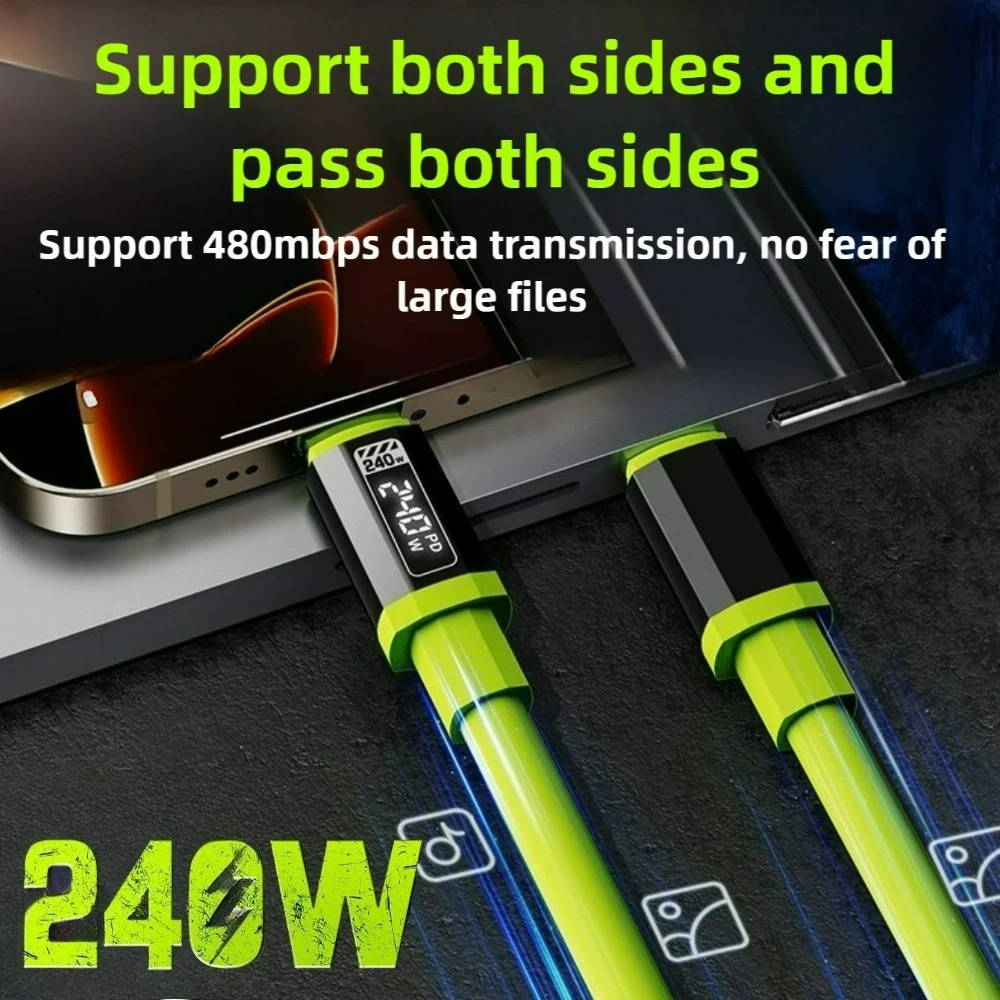 Universal Type C To Type C High Power Charger Cord 240W with Power Screen for Xiaomi Huawei OPPO VIVO IPhone 15 16 17 Samsung