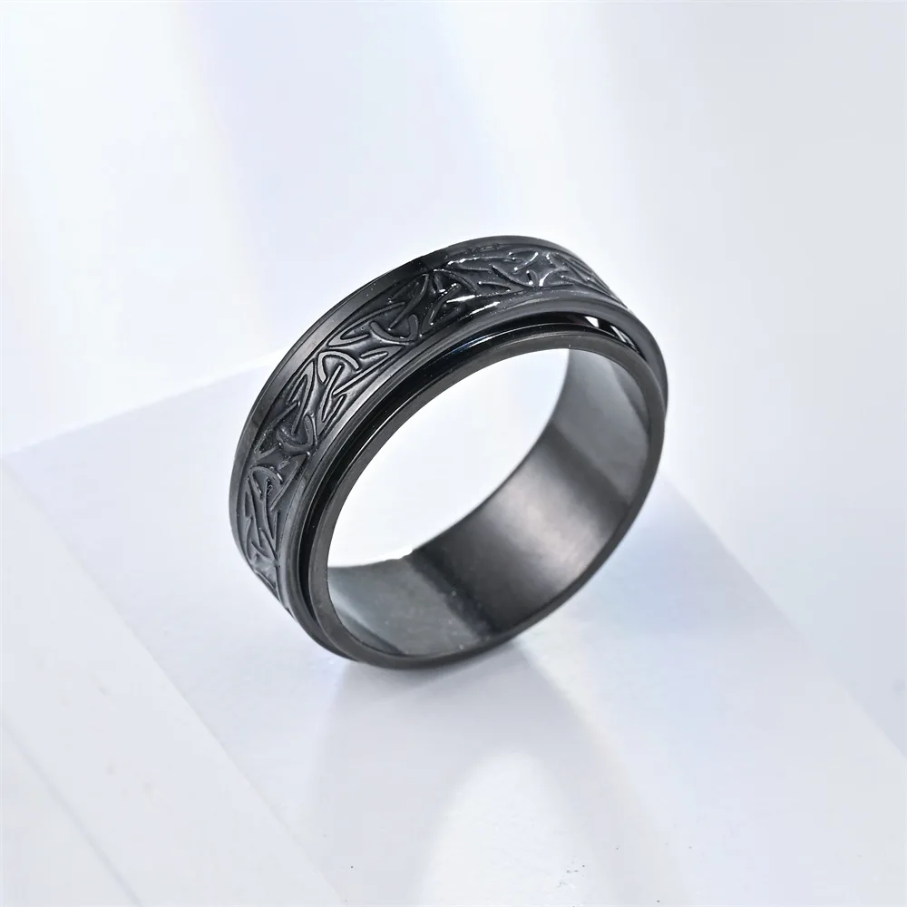 Hip Hop Celtic Knot Rune Rotating Anxiety Rings For Men Viking Script Stainless Steel Fidget Metal Spinner Rings Anillos