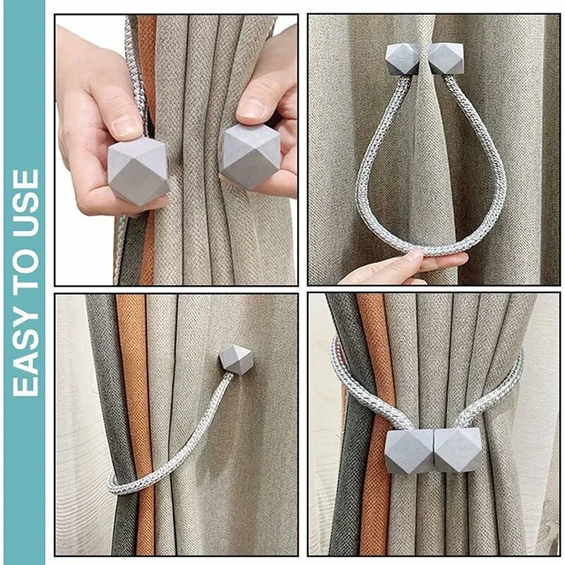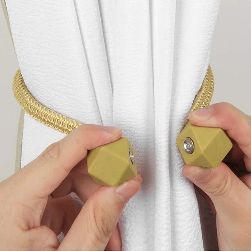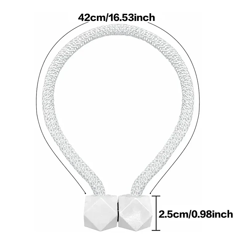2pcs Curtain Tiebacks with Strong Magnet Thick Rope Design Bedroom Living Room Kitchen Durable Plastic Home Decor Accessory
