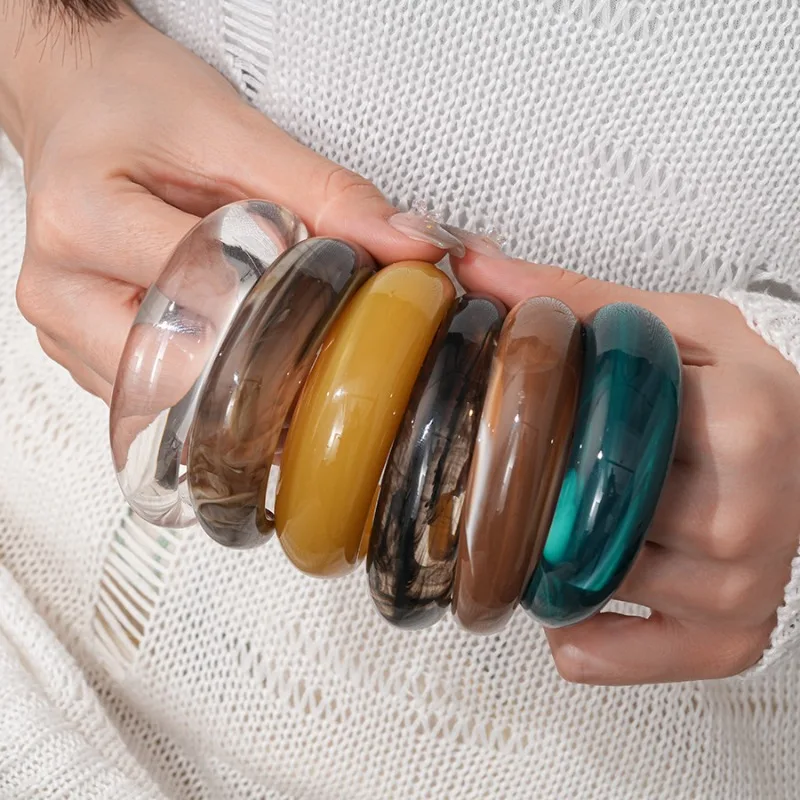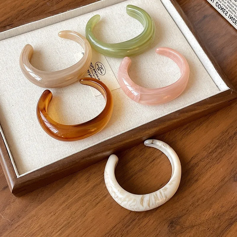 Smooth Round Acrylic Cuff Bangles for Women Vintage Exaggerated Jelly Color Smudging Bangle Wide Resin Bracelet Accessories M1