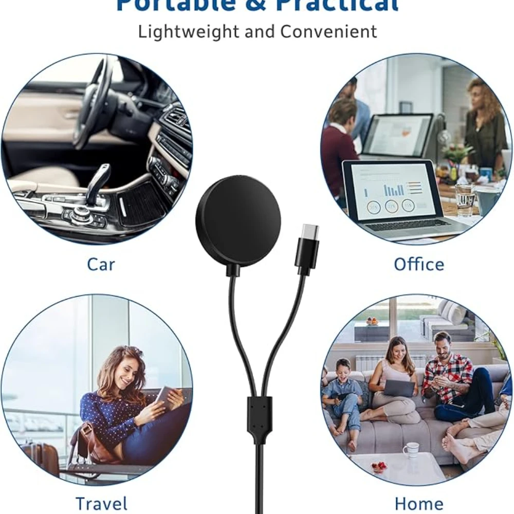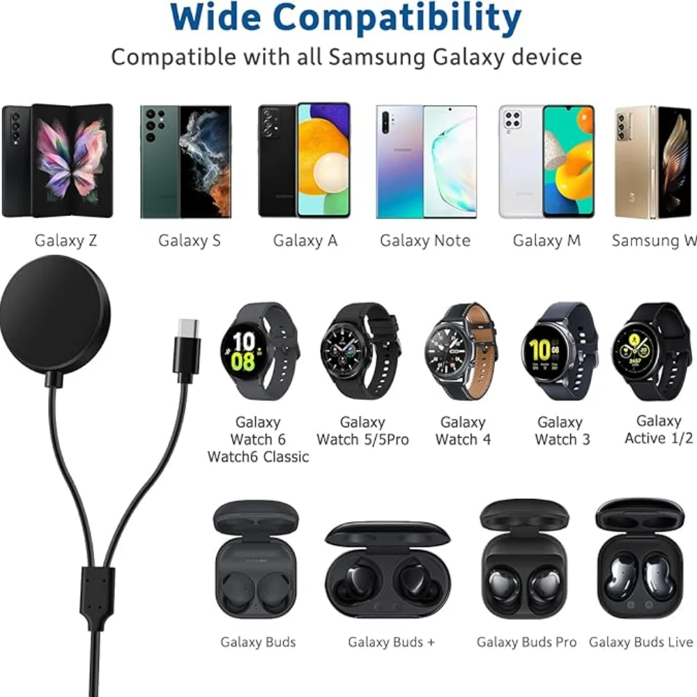 2-in-1 charger for Samsung Galaxy Watch 7/6/5/5 Pro USB-C smartwatch and smartphone charger replacement charging base cable