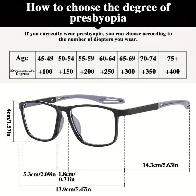 8pcs Super Value Rectangle Simple Sport Non-Slip Presbyopia Glasses - Multiple Pairs for Middle-Aged and Elderly Men and Women