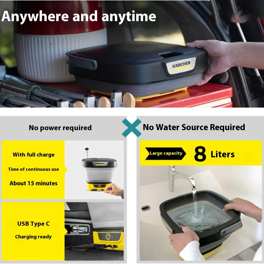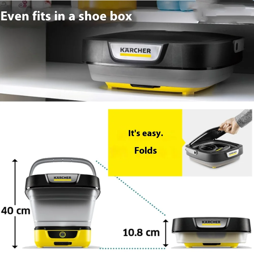 The cordless USB rechargeable portable pressure washer is foldable for cleaning balconies, bathrooms, cars, Karcher OC3
