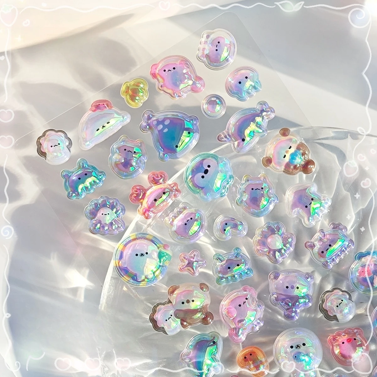 Cartoon Bowknot Animals Rainbow Gradient 3D Relief Stickers Cute Stationery Diy Scrapbooking Journal Sticker Decor Art Supplies