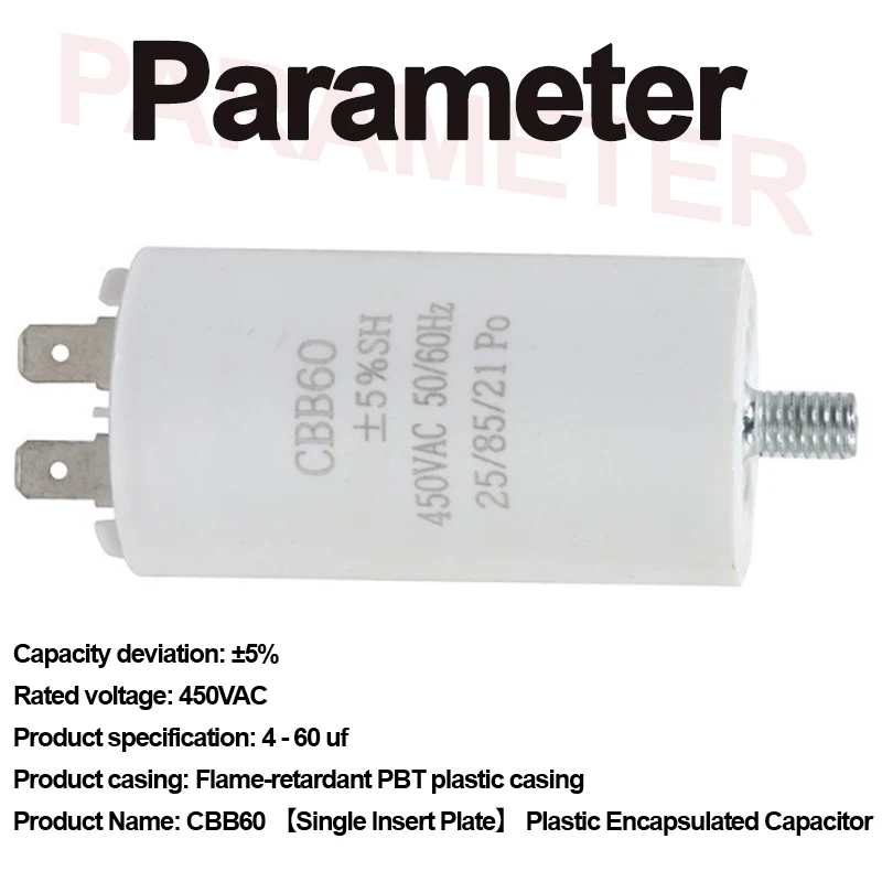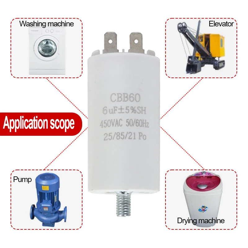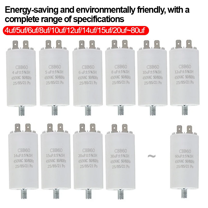 CBB60 Washing Machine Pump Starting Capacitor:4uf,5uf,6uf,8uf,10uf,12uf,14uf,15uf,20uf,25uf,30uf,35uf,40uf,45uf,50uf,60uf 450VAC