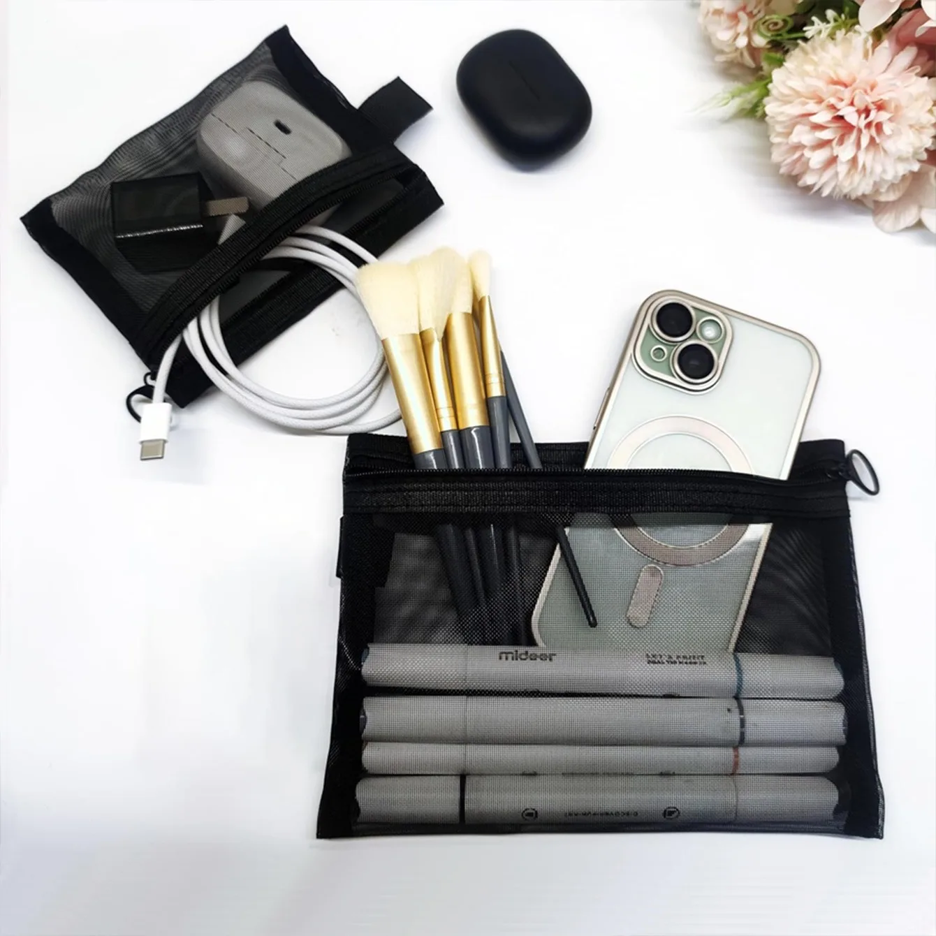 Women Mesh Cosmetic Bag Travel Storage Makeup Bag Organizer Female Make Up Pouch Portable Small Large Toiletry Beauty Case