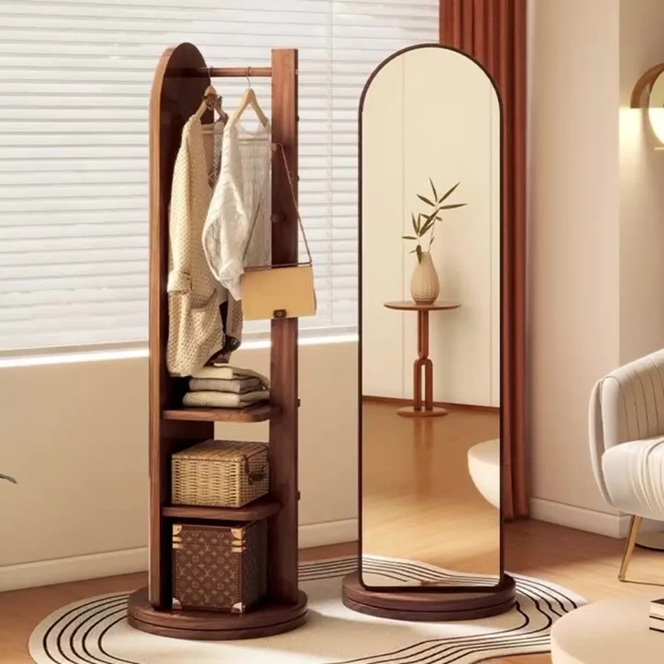 Full-length mirror with coat rack, rotating floor mirror, home bedroom dressing mirror, fitting mirror, multi-function mirror