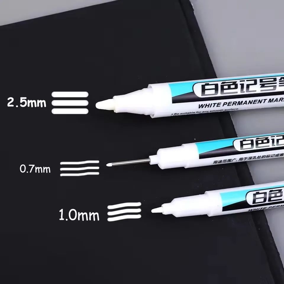 0.7/1.0/2.5MM White Permanent Marker Pens Markers Paint Pen For Wood Plastic Leather Glass Stone Metal Art Painting Supplies