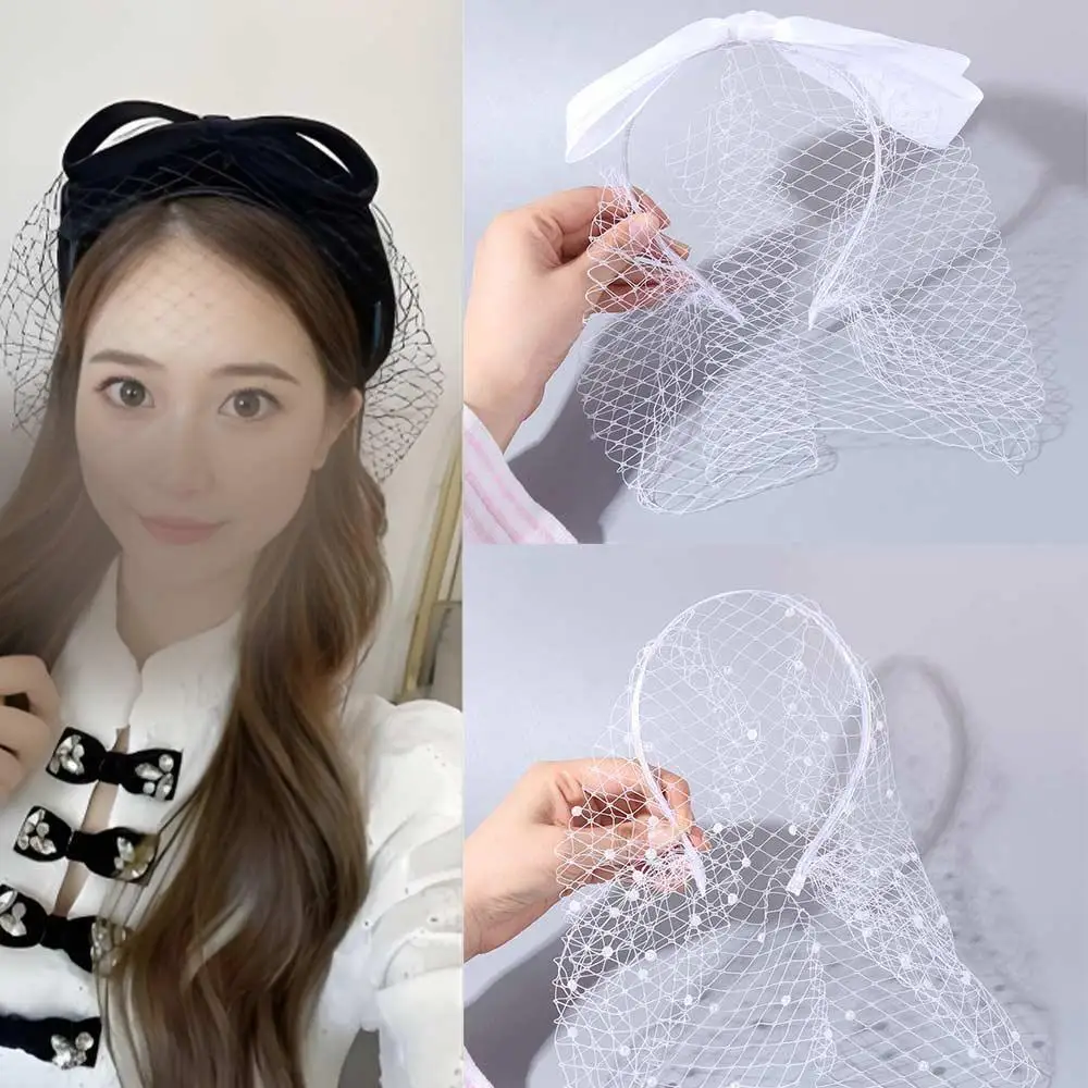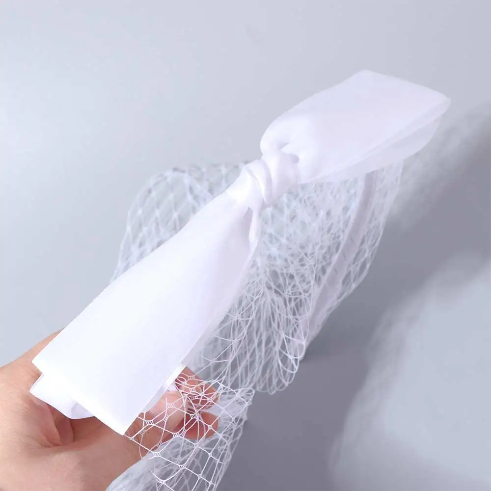 New French Style Bride Veils Satin Bow Elegant Bridal Headwear Fairy White Wedding Headband Face Cover