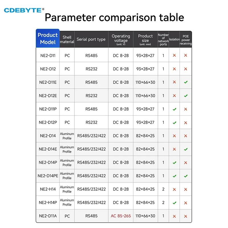 Serial Port Server RS485 To Ethernet CDEBYTE NE2-D11 DC 8-28V TCP/UDP Modbus MQTT HTTP DNS FOTA Remote Up DIN Rail Installation