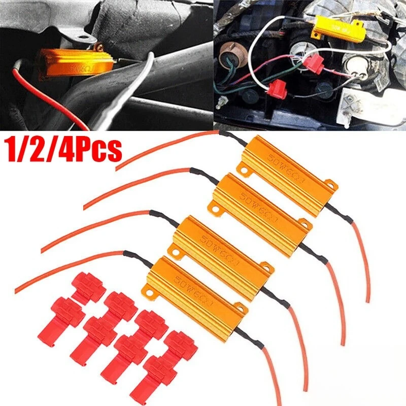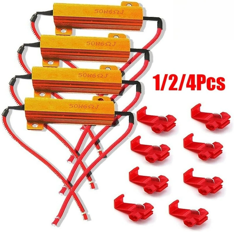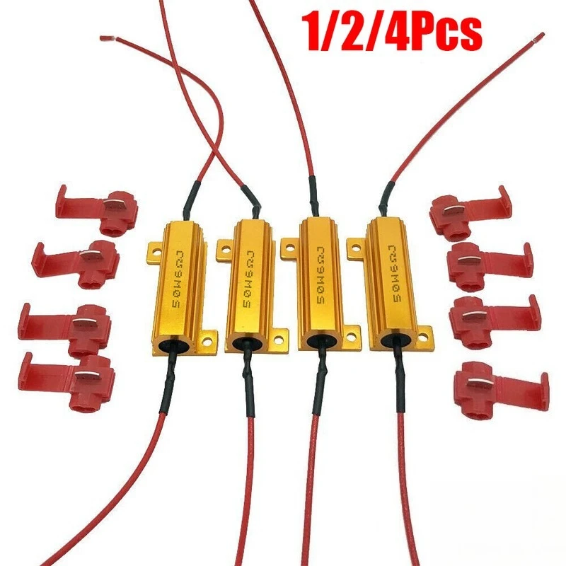 1/2/4Pcs Yellow Aluminum Shell Resistor LED Lamp Resistor 50W 6 Ohm 8 Ohm 10 Ohm with Wire with Red Clip Wholesale