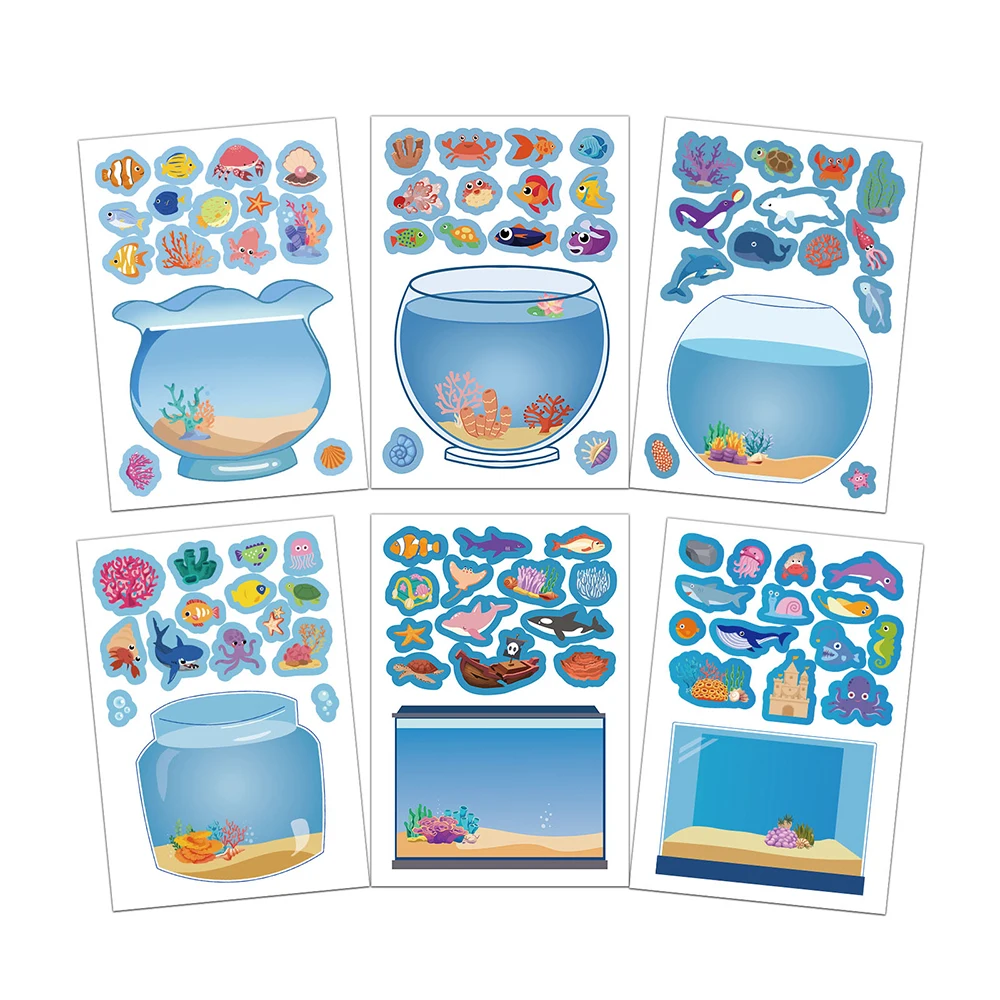 8/16/32PCS Funny Cartoon Lucky Fish Tank Puzzle Sticker Toy Handmade DIY Notebook Desktop Creative Decoration Waterproof Sticker