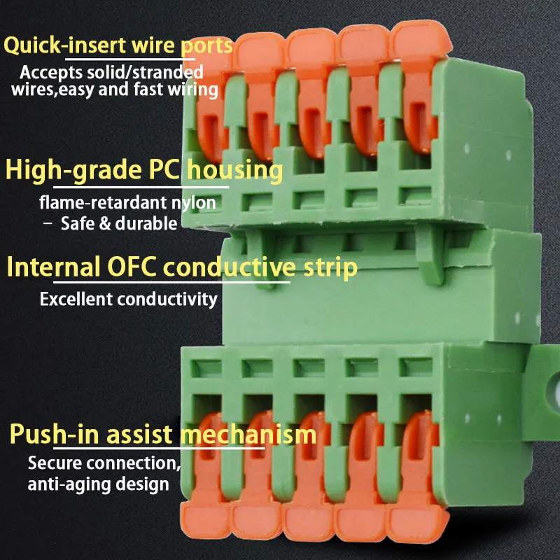KSKT5.08 Push-in Terminal Blocks - Solderless Connection/Flame Retardant PC Material, High Conductivity/Flameproof & Waterproof