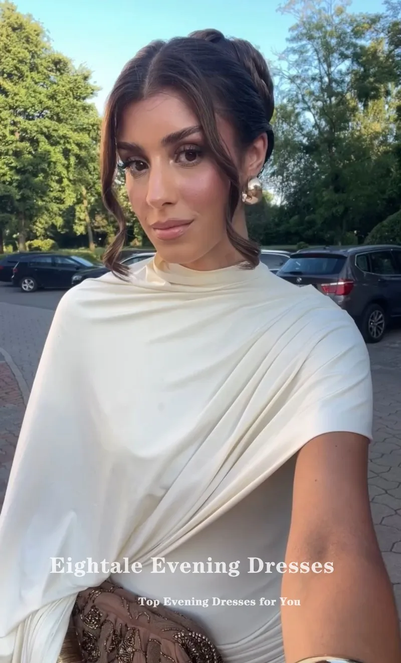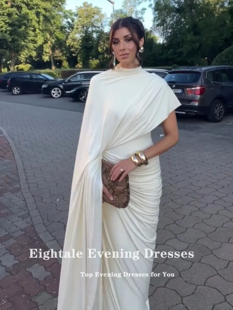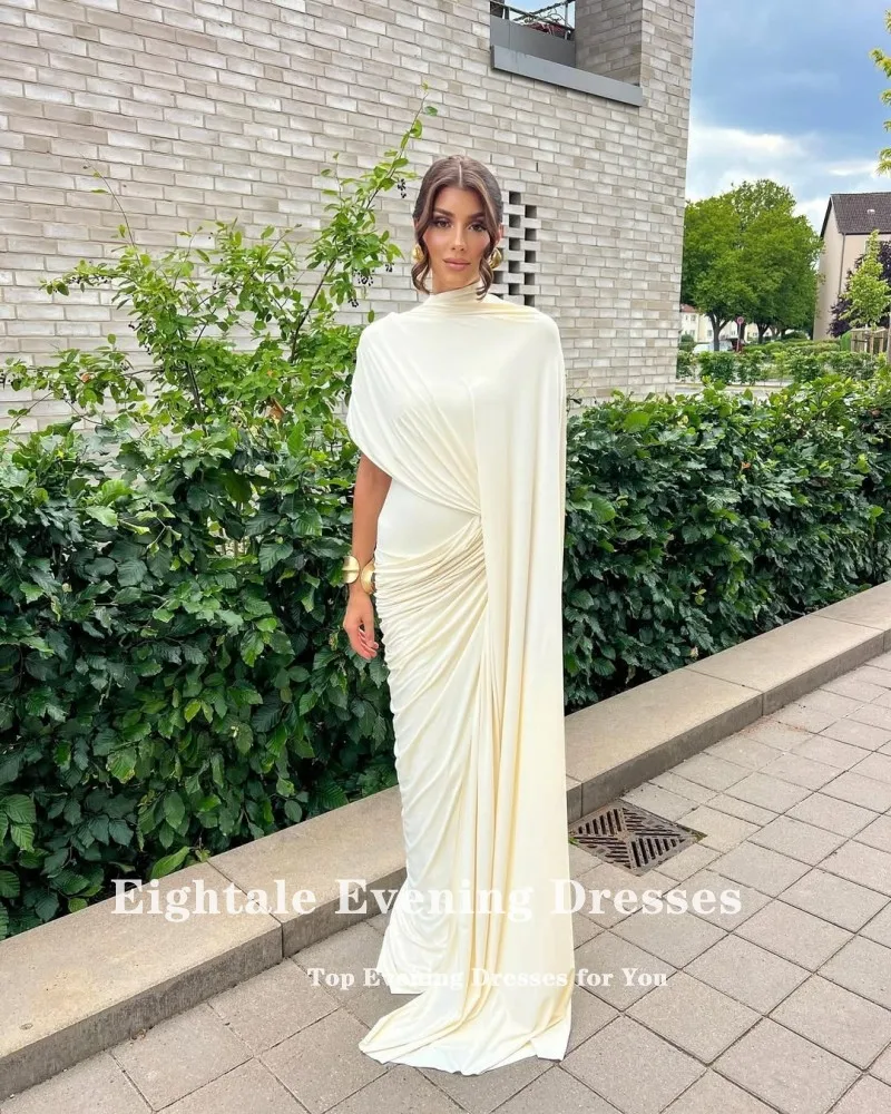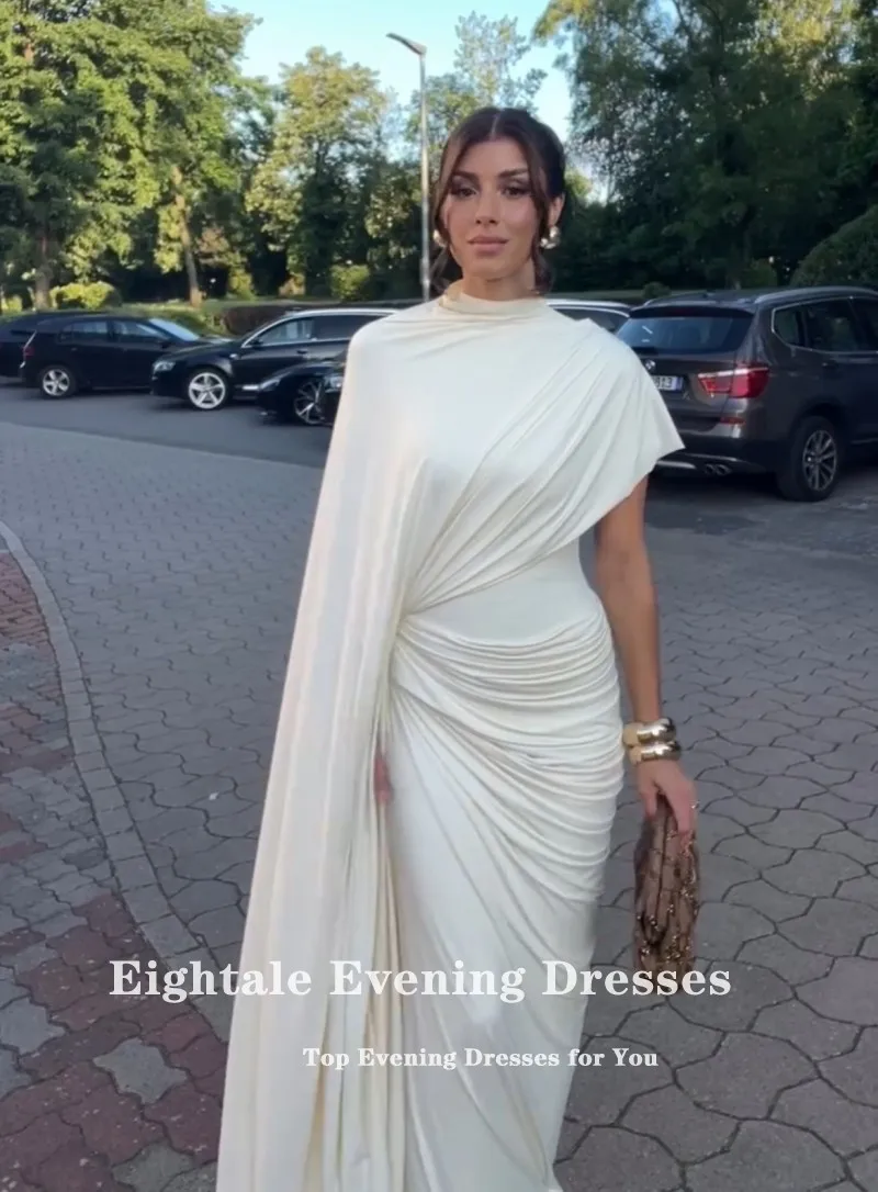 Eightale Arabic Evening Dress O-Neck Cap Sleeves Customized Pleats Stretchy Mermaid Wedding Party Dress Vestido De Noche