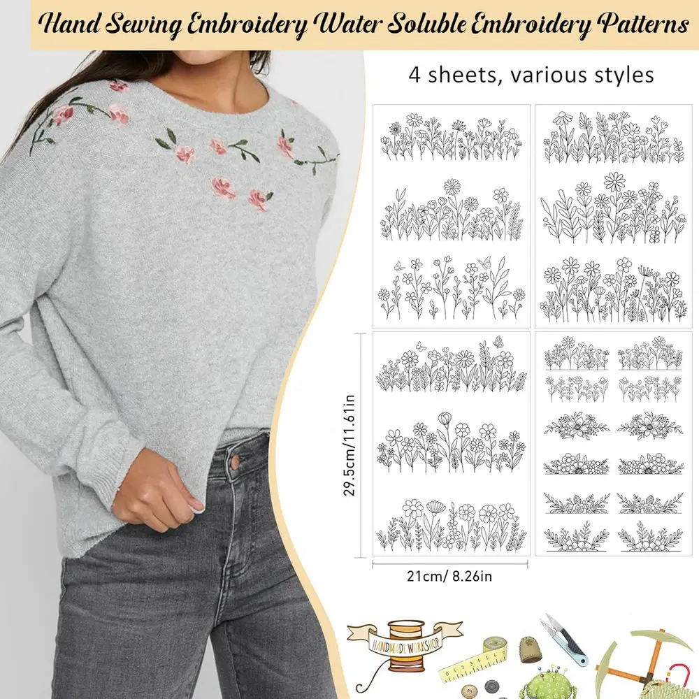 Water Soluble Stabilizer Embroidery Patterns, Stick and Stitch Embroider Paper Wash Away, Flower Floral Daisy Butterfly Designs