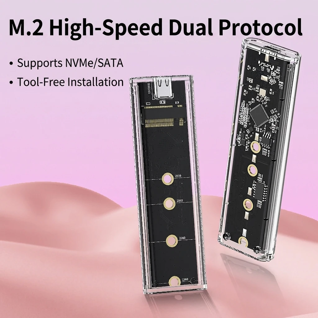 M.2 NVME PCIe NGFF SATA Dual Protocol SSD Case Clear USB Type C PCI-E M2 SSD Transparent External Enclosure Hard Disk Box