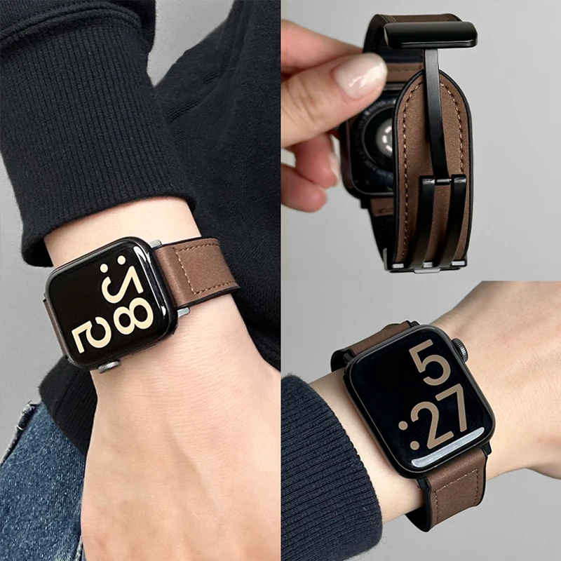 aliexpress , ali , shop , ali shop , online , store , online shop , online store , buy , sell , Leather+Silicone Strap For Apple Watch Band Ultra 49mm 44mm 45mm 41mm 46mm 40mm 42mm Magnetic Bracelet iwatch Series 10 9 8 7 6