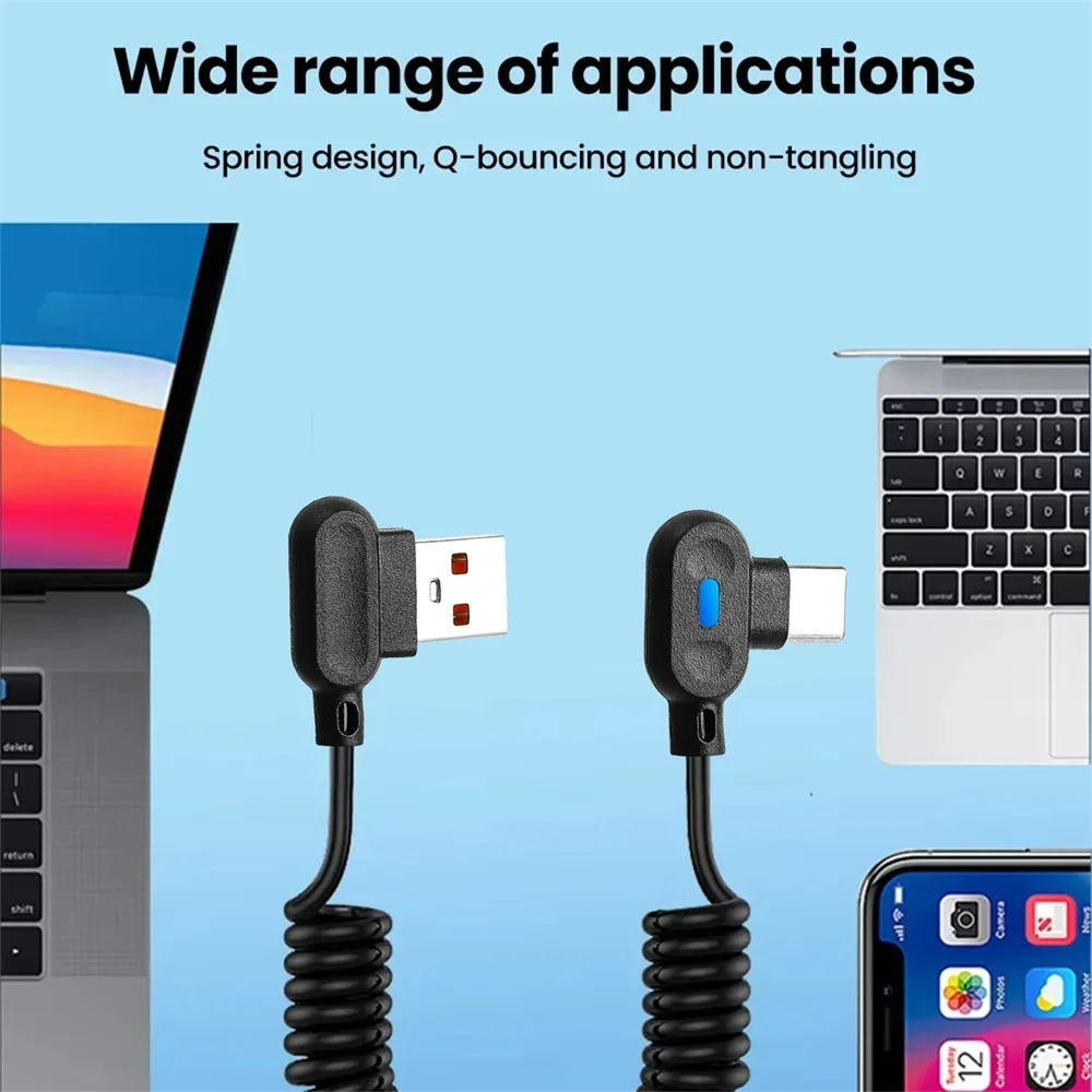 6A Spring Fast Charging Cable 90° Elbow Adjustable USB To Type C High Speed Cord For iPhone Sansung Xiaomi Car Quick Charge Cord